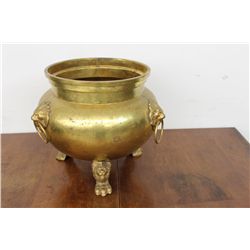 EARLY HAND MADE BRASS FOOTED KETTLE - SIGNED ON BOTTOM - 14" X 12.5"