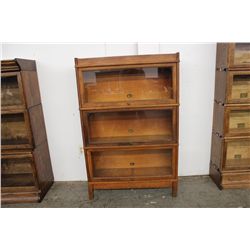 EXC. OAK 3 SHELF DOUBLE DOOR LEADED BOOKCASE