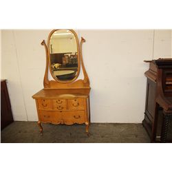 CHEVIEL DRESSER MIRROR W/ 1 DRAWER DECORATED - MAHOGANY