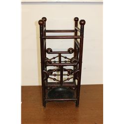 MOST DECORATIVE WALNUT STAND TRIMMED W/ BRASSES & SHAPED TOP - 32" X 21"