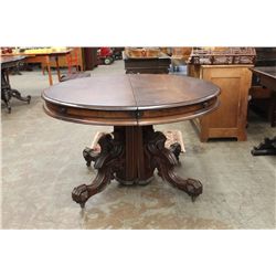 FANTASTIC WALNUT MASSIVE TILT TOP TABLE - HEAVILY CARVED 4 LEGGED PEDESTAL TOP - 1 PC. OF WOOD - 48" - WOW