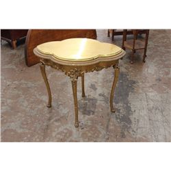CLOVER FRENCH STYLE GOLD GUILDED TABLE W/ GLASS TOP