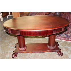 OVAL MAHOGANY 1 DRAWER LIBRARY TABLE W/ TURNED BASE & CLAW FEET- 52" X 33" X 30"