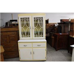 MOST UNUSUAL KITCHEN HOOSIER CABINET W/ LATTICE GLASS FRONT