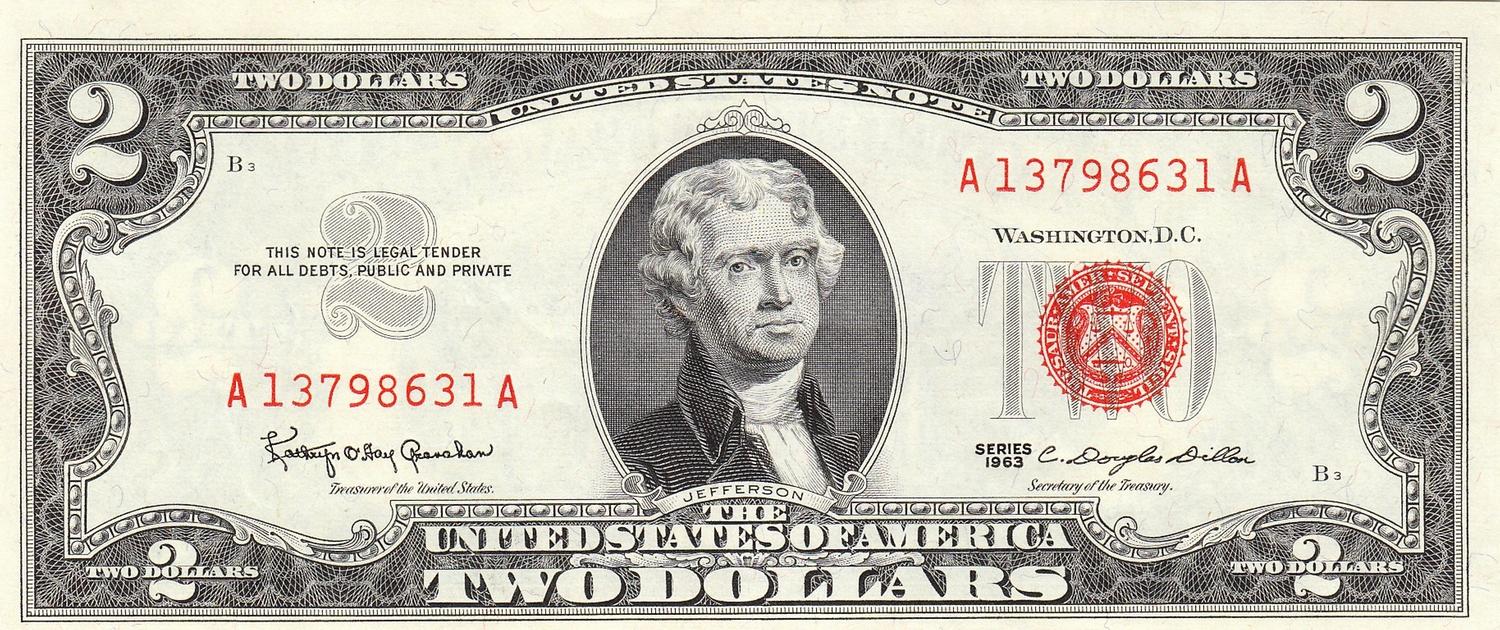HIGH GRADE CRISP $2 RED SEAL 1963 CHERRY SEAL