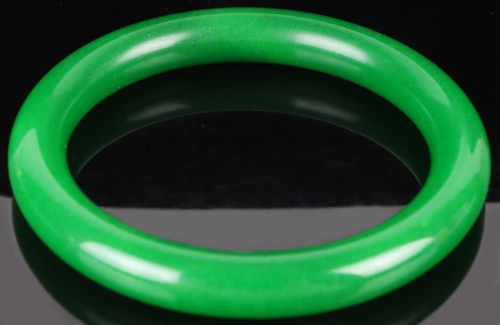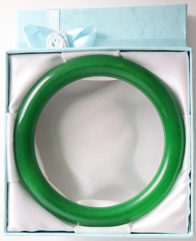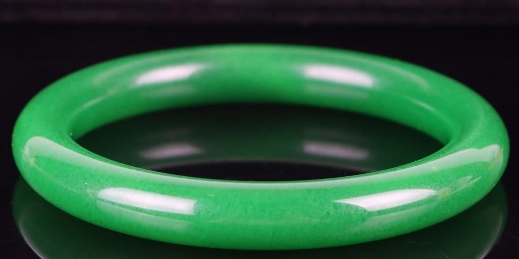 Vintage high grade green jade hololith solid Chinese bangle bracelet comes with box.
