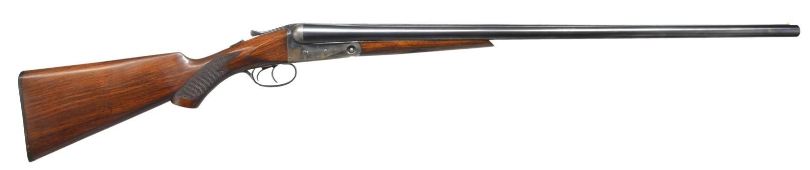 SHOTGUN. Cal. 12 Ga., 2 3/4". S# 233527. Bbl. 30" w/ 2 ivory beads on standard rib w/ correct factory markings. Flats stamped w/ Parker proofs. Lumps stamped w/ S#, Ga. & frame size "2". Case hardened action is correctly marked on water table & features automatic safety as well as blued dbl. triggers. Action is of later style w/ out rib extension & is engraved “Parker Bros.” on each side. S# is on trigger guard tang. Plain American walnut pistol grip stock measures 14" over ribbed hard rubber buttplate. Widely spaced flat top point pattern checkering is at grip. Matching splinter forend has roller friction release. DIMENSIONS: bore dia. left .730, right .730. Restrictions: left .020 (Mod), right .020 (Mod). Min. Wall Thickness: left .036, right .034. DAH 2 3/4". DAC 1 3/4". LOP 14". Cast 0. WEIGHT: 7 lbs. 13oz. CONDITION: very fine original, bbls. retaining approx. 95% blue w/ quite a few scattered marks & a couple of rubs. Action retains approx. 70% original case hardening color w/ high edge wear & some freckling & w/ considerable hand carry wear at front & bottom. Stocks retain approx. 80% original finish w/ a number of light scratches & some areas rubbed through on sharp edges. Bores are very fine, bright & shiny. Actions tight. (21-283/MGM). CURIO. $1,000-1,500.