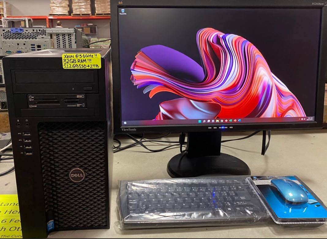 INTEL XEON PROCESSOR DESKTOP W/ WIN 11 PRO/ 32 GB RAM/4 GB GRAPHICS CARD/512 GB SOLID STATE DRIVE/2 TERABYTE STORAGE HDD/MS OFFICE 2019/ ANTIVIRUS 2022/ 24" LCD MONITOR/KEYBOARD & MOUSE. ORIGINAL MSRP OF THIS WORKSTATION WAS $2600.