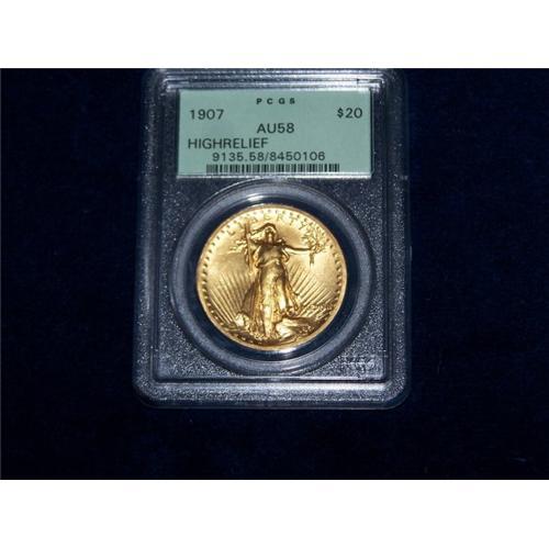 <table width="100%" border="0" cellspacing="0" cellpadding="4"><tr><td><em> </em></td></tr><tr> <td width="100%"> $14500. minimum bid. pictures do not do justice for this beautifull must have coin for the serious collector </td></tr><tr> <td> </td></tr><tr> <td>Reference #: ONE</td></tr><tr><td>Condition:Exceptional</td></tr><tr><td>Year:1907</td></tr><tr><td>Country:US</td></tr><tr><td>Maker:US MINT</td></tr><tr><td>Title:HIGH RELIEF AU58 PCGS 1907 $20.</td></tr><tr><td>Location:Aberdeen, US</td></tr></table>