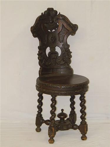 HIGH RELIEF CARVED VICTORIAN OAK SIDE CHAIR W/ CARVED & PIERCED BACK, ROUND SEAT, & ROPE TURNED LEGS - REPAIRS, WEAR & IMPERFECTIONS