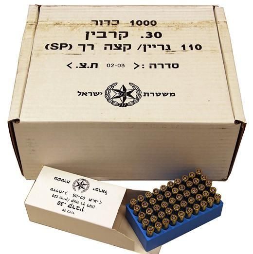 FAMILY:Accessories MODEL:IWI 30 Carbine TYPE:Accessory-Ammunition CALIBER/GAUGE:30 Carbine CAPACITY:1000 Rounds / 20 50RD Boxes ADDL INFO:Brass Case ADDL INFO:110gr Jacketed Softpoint ADDL INFO:IWI 30 Carbine on Headstamp GUN CASE:Brass