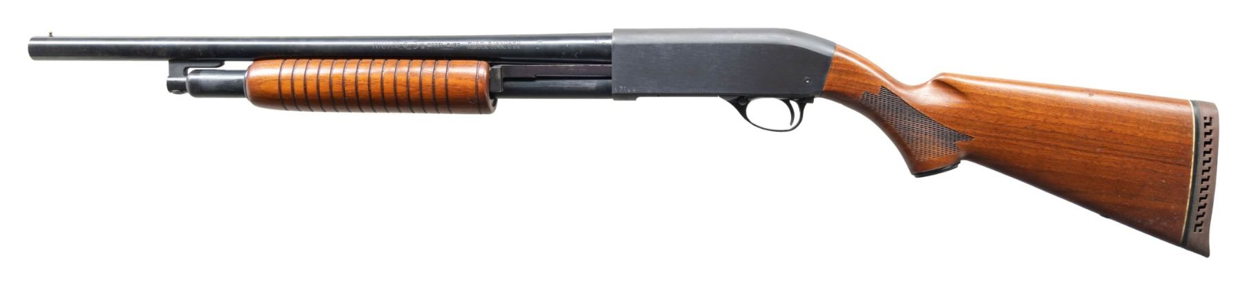 Cal. 12ga, 2 3/4". S# 3125051. Bbl. 20" w/ cyl. bore & bead. Blued finish. Tubular mag. Police Inv # "17149" on left side receiver. Walnut stock set w/ brown pad. CONDITION: very good overall appearance with handling marks. Very good shiny bore. (25-2954/MD). MODERN. $300-600.