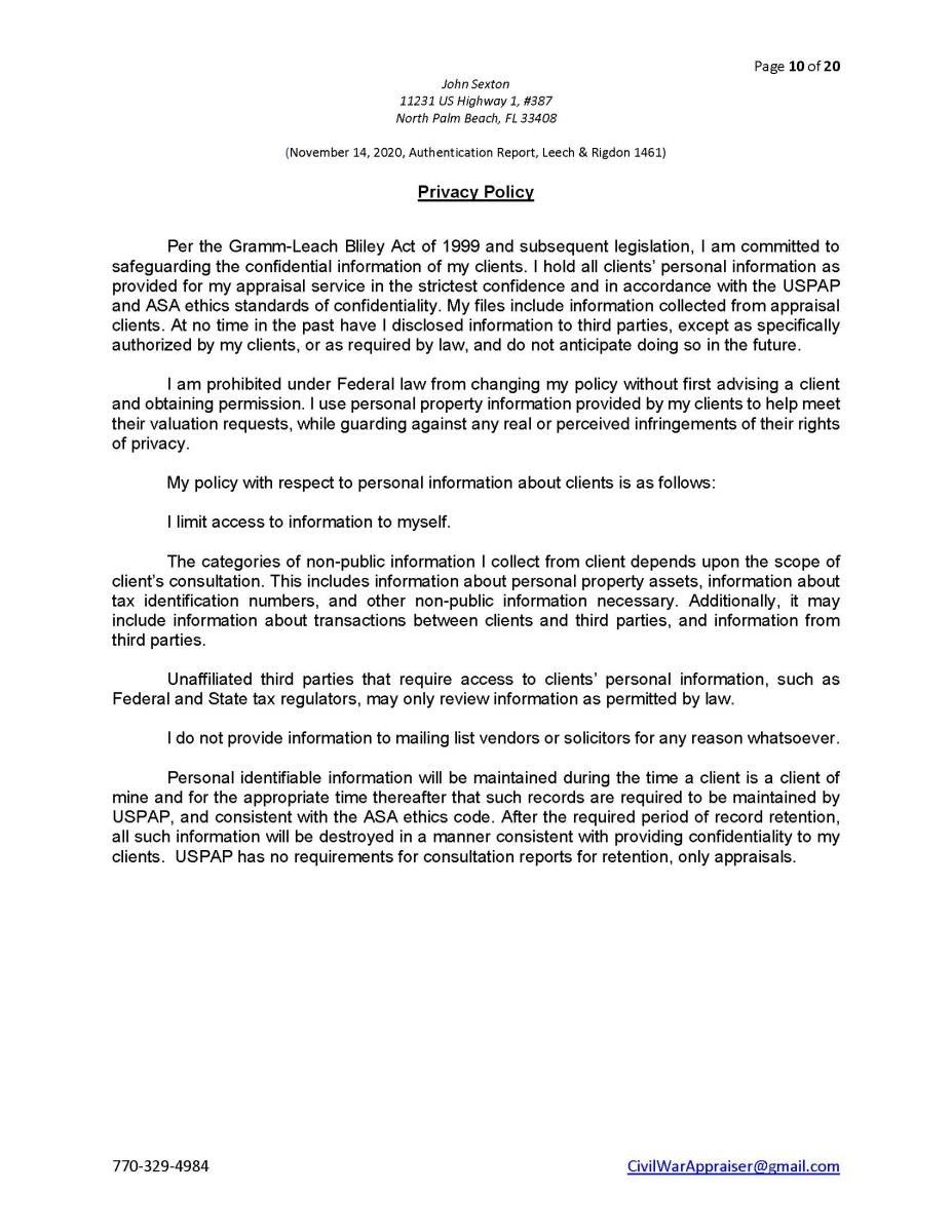 7. NAMES OF CONSIGNORS ARE CONSIDERED CONFIDENTIAL and will not be given out unless we have prior approval from the consignor to do so or if the auctioneer deems necessary.