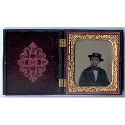Other than the familiar chip next to the catch on the inside left rail of the cover, appears flawless. Nice 1/6 plate tintype of a young man. Case is