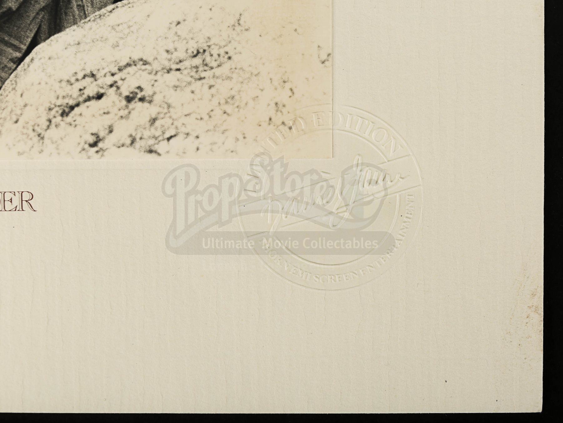 4.2. Prop Store’s staff are not professional restorers so descriptions of Lots, images and statements of condition in Prop Store’s brochure or on its website are for illustrative purposes only. Poster lots in the auction may have undergone restoration; Prop Store staff will make reasonable efforts to identify any restoration and this will be disclosed within the lot description. Prop Store cannot guarantee that colours are properly shown. Save for Prop Store Terms of Guarantee of Attribution all Lots are sold ‘as is’. Save for Prop Store Terms of Guarantee of Attribution all Lots are sold ‘as is’. Prop Store cannot and does not warranty any restoration or the longevity of any restoration work carried out at any point in a lot's lifetime. Bidders are encouraged to inspect Lots and satisfying themselves as to condition before bidding, taking independent professional advice where required.