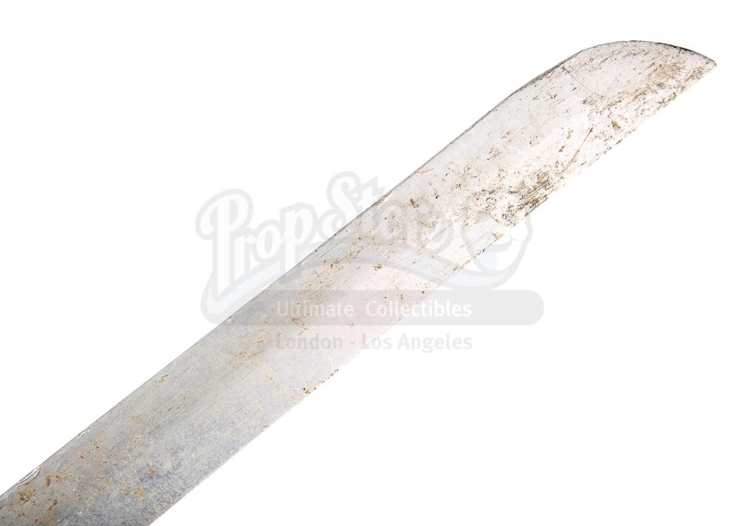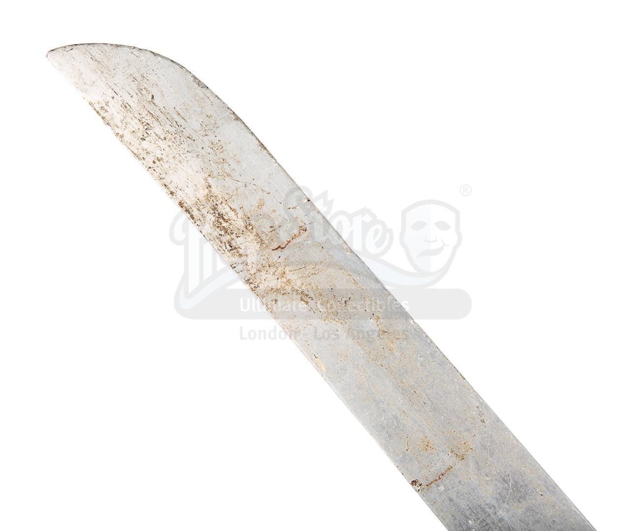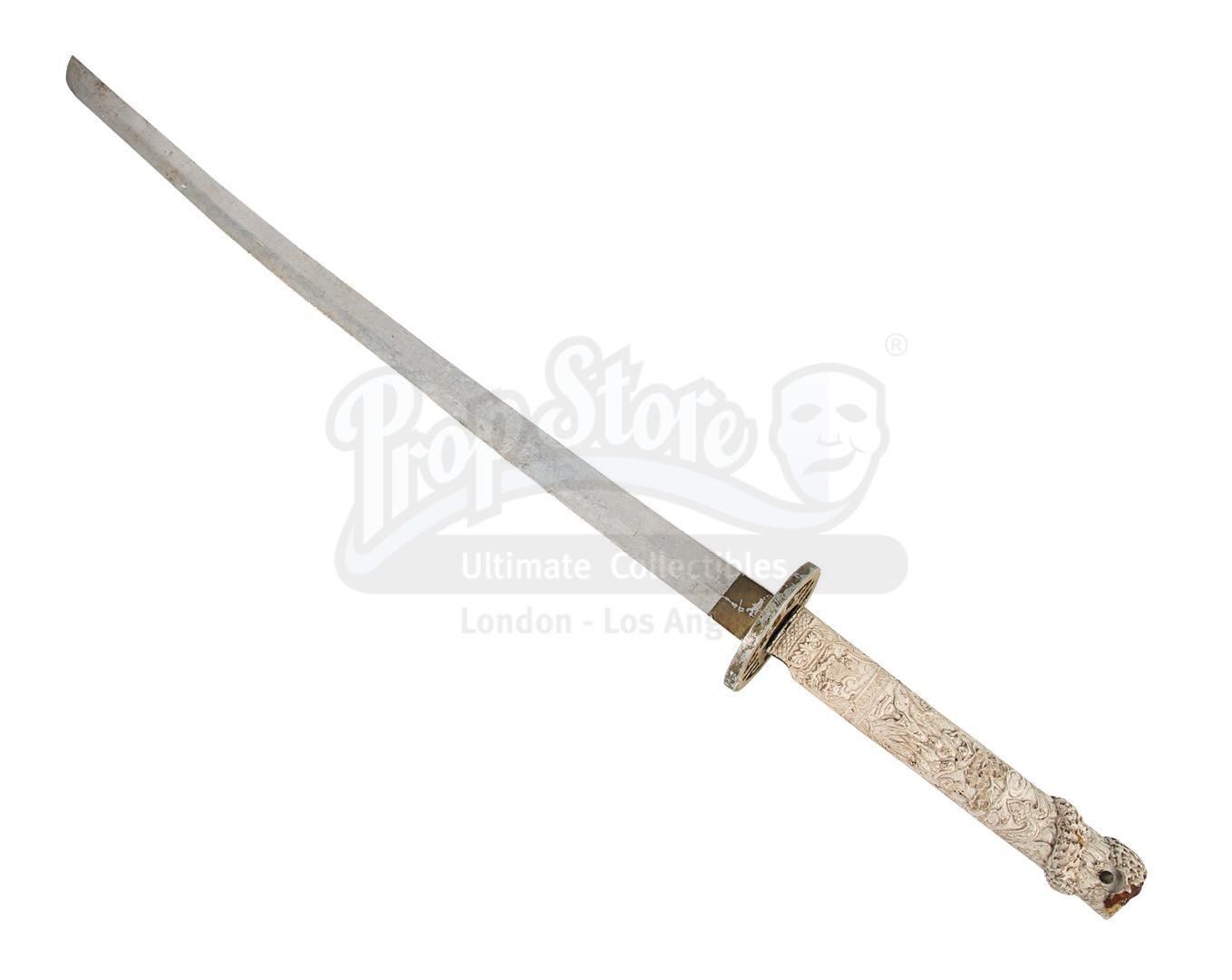 Ramirez's (Sean Connery) katana from Russell Mulcahy's fantasy action-adventure Highlander. The Spanish-Egyptian immortal wielded his sword throughout the film as he trained Connor MacLeod (Christopher Lambert) to face The Kurgan (Clancy Brown). Ramirez was ultimately beheaded by The Kurgan, and the katana passed on to MacLeod, becoming his signature weapon throughout the ages. This version of the sword is missing the dragon head on the pommel, a component that broke away when MacLeod dropped the sword shortly after his final victory over the Kurgan while receiving "the Prize".