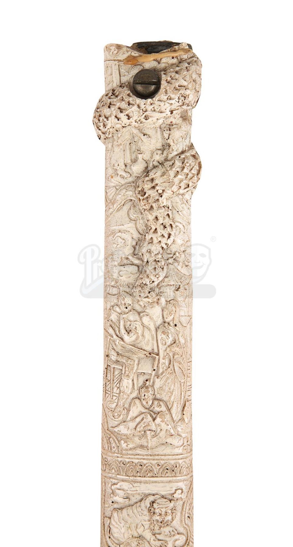 11.2. In the catalogue descriptions, Prop Store takes steps to identify and provide provenance for Lots offered at auction. In many cases, the Lots offered were used in or in conjunction with motion pictures or other programmes and information is furnished in order to fully identify and describe the Lot offered at Auction, including photographs and illustrations. Prop Store in no way claims any connection to or relationship with the producers of the motion picture or other programme. In all cases, the use of the titles or other elements of a motion picture or other programme is for informational purposes only.