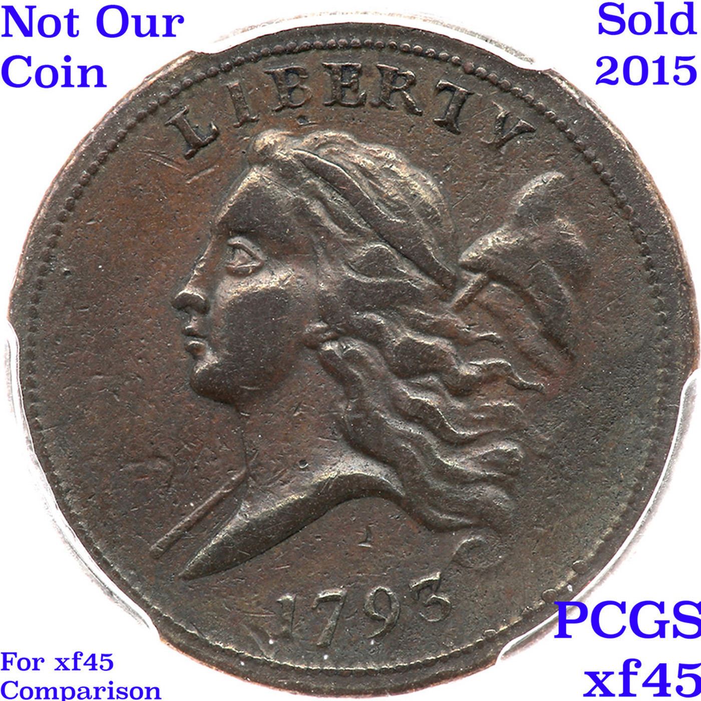 ***Auction Highlight*** 1793 C-1 R3 Liberty Cap half cent 1/2c Graded xf45 By SEGS. HIGHLIGHT OF THE ENTIRE AUCTION - Up for Auction is the First Half Cent Struck in the Fledgling United States, The “Left facing Half Cent” - The C-1 variety is considered by most specialists to be the first 1793 half cent struck, according to die state and emission sequence analysis. Four varieties are known for the 1793 half cents, and they were produced in an unbroken chain consisting of two obverse and three reverse dies. The total mintage for the year was 35,334 coins, all produced during the summer 1793, beginning on July 20. Walter Breen made a case for Adam Eckfeldt as the designer of these coins, although other specialists have disputed such an attribution. It is not known who actually prepared the design and the dies for these first half cents, although it may have been Joseph Wright, who designed the Liberty Cap large cents two months later.At the time, half cents and large cents were not actually legal tender issues, a status reserved for silver and gold coins that were first produced in the following year. Section 16 of the Mint Act of April 2, 1792 specifically stated: "That all the gold and silver coins which shall have been struck at, and issued from the said mint, shall be a lawful tender in all payments whatsoever, those of full weight according to the respective values herein before declared, and those of less than full weight at values proportional to their respective weights."This example is a lovely dark olive piece with glossy surfaces and only a trace of rub on the high points. The surfaces have light planchet striations or rifts as struck. In addition, a few post-mint abrasions are evident, but clearly not significant. I have included 3 other xf45 examples for your comparison. I wish you luck in obtaining this scarce and highly sought piece of American History. A Corey's Pick, Bid to Win, Don't let it get Away, you might not find its equal Coin. I give this coin my highest recommendation