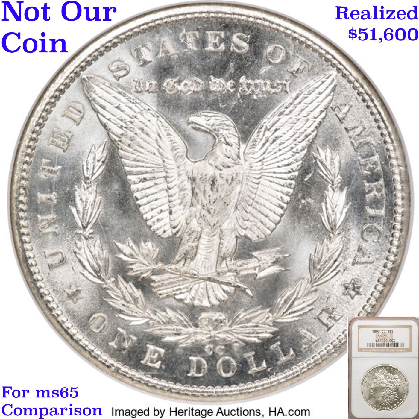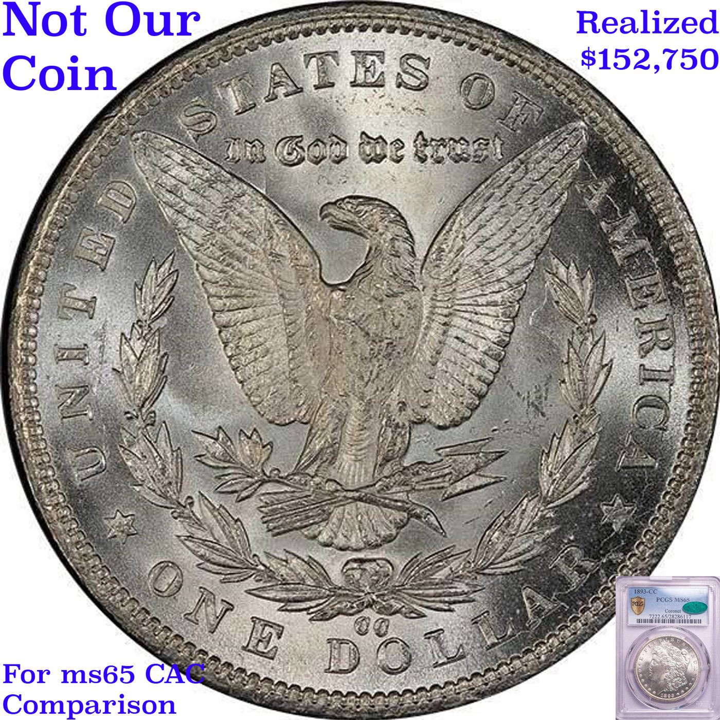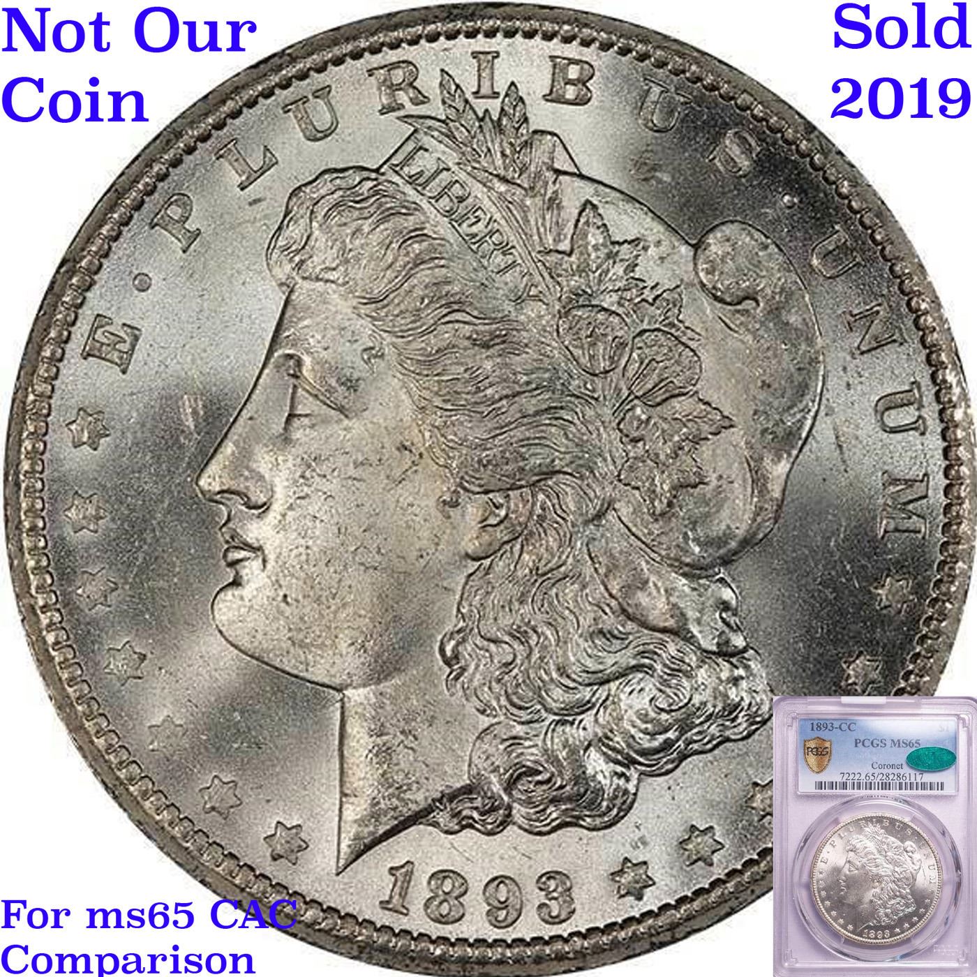 ***Auction Highlight*** 1893-cc Vam 2A R5 Morgan Dollar $1 Graded ms65 By SEGS. HIGHLIGHT of the NIGHT – Up for Auction is one of the last coins ever struck in the legendary Carson City Mint, a superb Gem 1893-cc Morgan Dollar, Vam 2A, Late Die State, (LDS), RARITY 5. The return of the anti-silver Democrat Grover Cleveland to the White House in the presidential election of 1892 sounded the death knell of coinage operations at the Carson City Mint. The last of the facility's Morgan dollars, a total of 677,000 pieces, fell from the presses in 1893. Although quantities of 1893-CC dollars emerged from government vaults from the 1920s through the late 1950s, their numbers were far fewer than those of many of the CC-mint issues from the early 1880s. A date that was essentially absent from the Treasury Department releases of the 1960s and the later General Services Administration sales, the 1893-CC is now widely recognized as one of the rarest Morgan dollars from the Nevada branch mint.In addition to mostly full definition, this Gem is praiseworthy for an uncommon lack of distracting abrasions. In fact, the number of blemishes is few, and there is not a single area of bothersome incompleteness of detail. Untoned, with rich, coruscant mint frost. and possessed of memorable eye appeal. The mint mark is tilted right and there is a die chip between the loops of the 3 (VAM 2a); die cracks are forming in the legends of both sides, and the area to the right of the eagle’s wing shows evidence of multiple die clashes. This appears to be one of the later state strikes which are said to be among the last Carson City silver dollars ever produced. One of the finest certified 1893-CC Morgan's, this coin shares the MS65 grade level with few coins and is 1 point from the finest known, an ms66 that trends $180,000 and last sold for $161,000. I have included 2 other ms65 examples for your comparison. A Corey's Pick, Bid to Win, Don't let it get Away, you might not find its equal Coin. I give this coin my highest recommendation