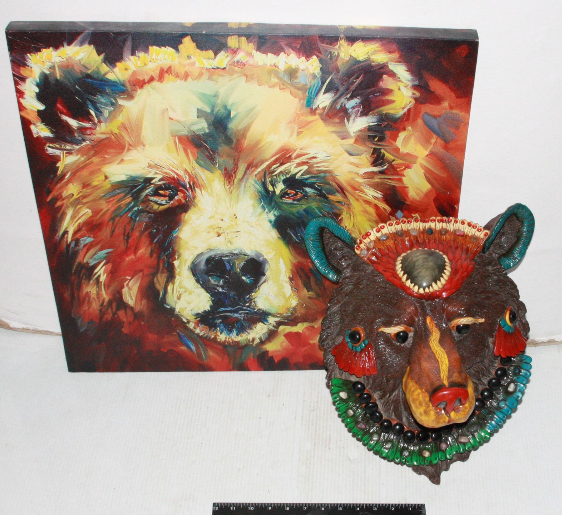 DAMAGE TO BACK, FRONT NO DAMAGE) SOLD WITH NEW WITH TAG 24" X 24" SIMILAR LOOK BEAR HEAD CANVAS MATERIAL PICTURE