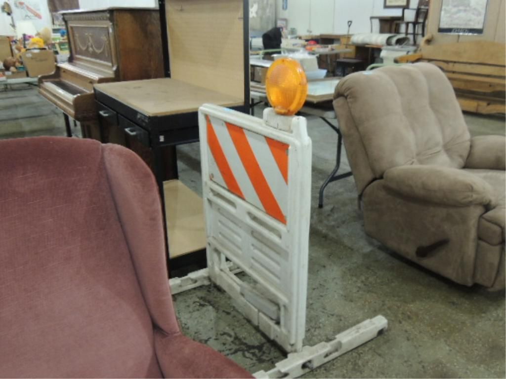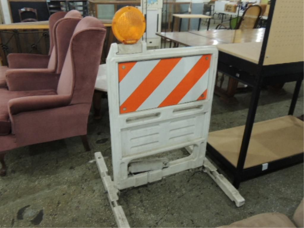 HIGHWAY CONSTRUCTION ROAD SIGN. BARACADE ROAD SIGN. 38" HIGH AND 28" WIDE. AS SHOWN.SEE PHOTO FOR DETAILS.