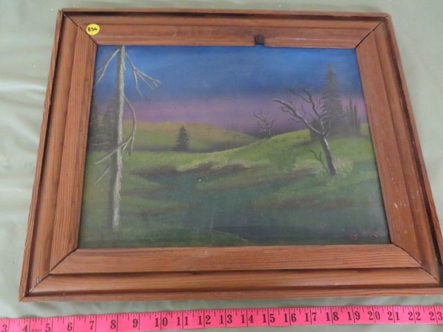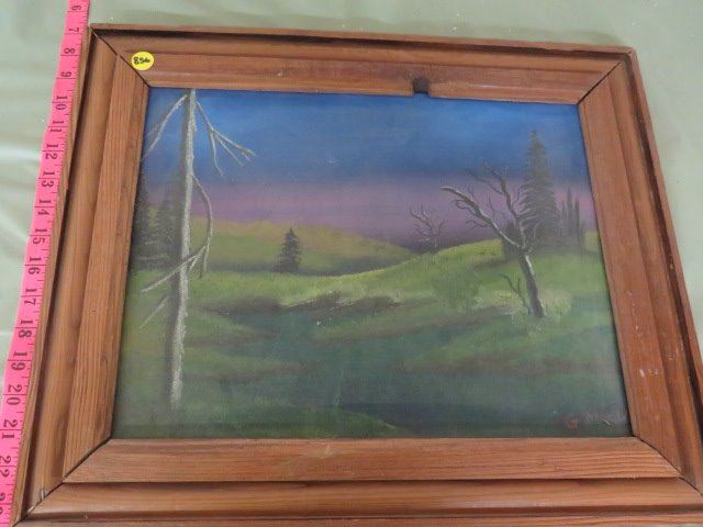 HILL SCENE WITH TREES , SIGNED PAINTING, FRAMED