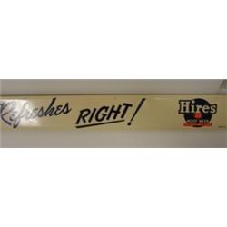HIRES ROOT BEER PUSH BAR for door. Reads "Hires Refreshes Right!-Hires Root Beer Since 1876". Minor scratching on front. Good condition. 32.75" L