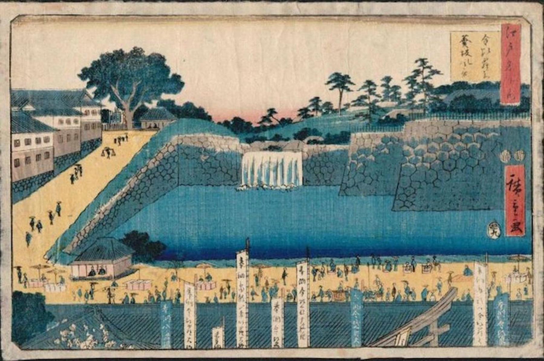 HIROSHIGE II CASTLE MOAT. OBAN, YOKO-E, 9 1/4 X 14, CIRCA 1860, GOOD CONDITION