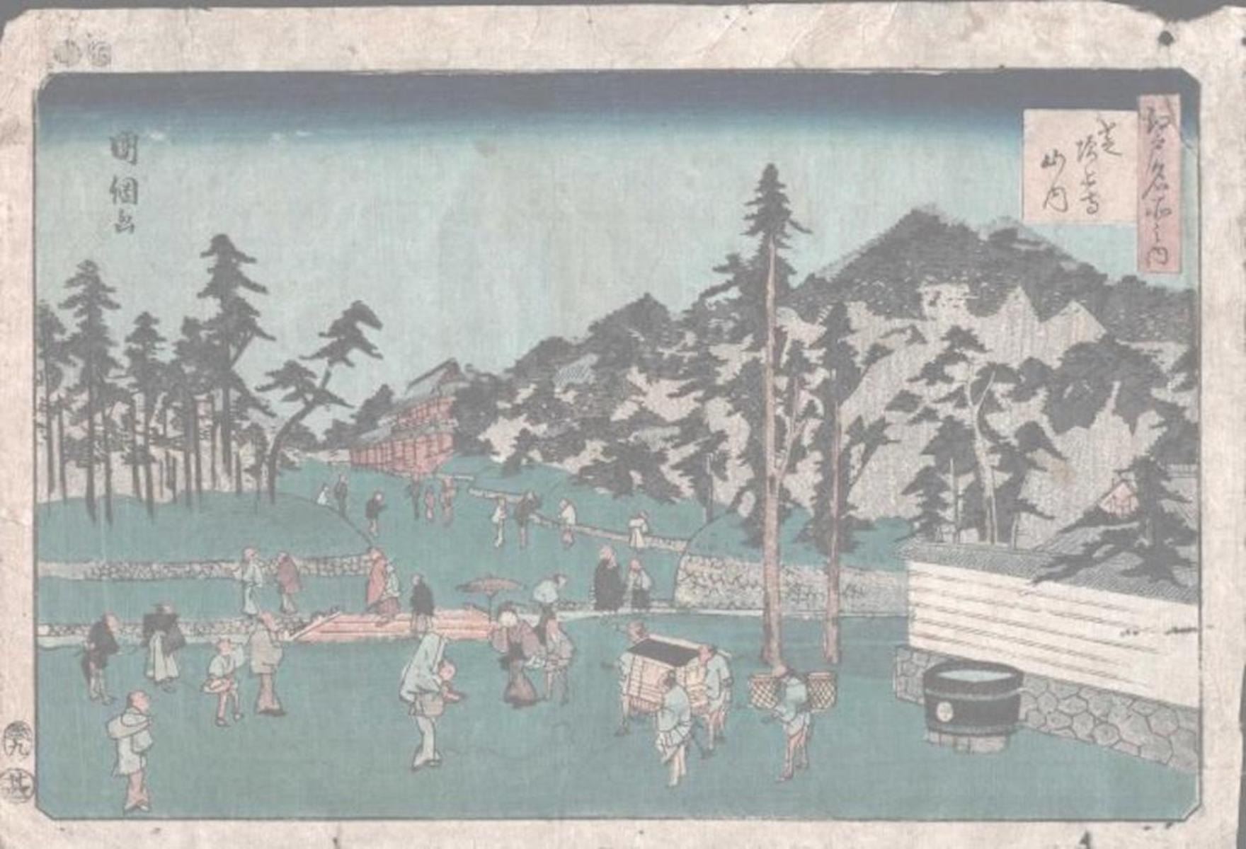 HIROSHIGE "MOUNTIANS AND TREES", MEASURES AT MEASURES AT 14 X 9.5, SEE DESCRIPTIONS FOR CONDITION