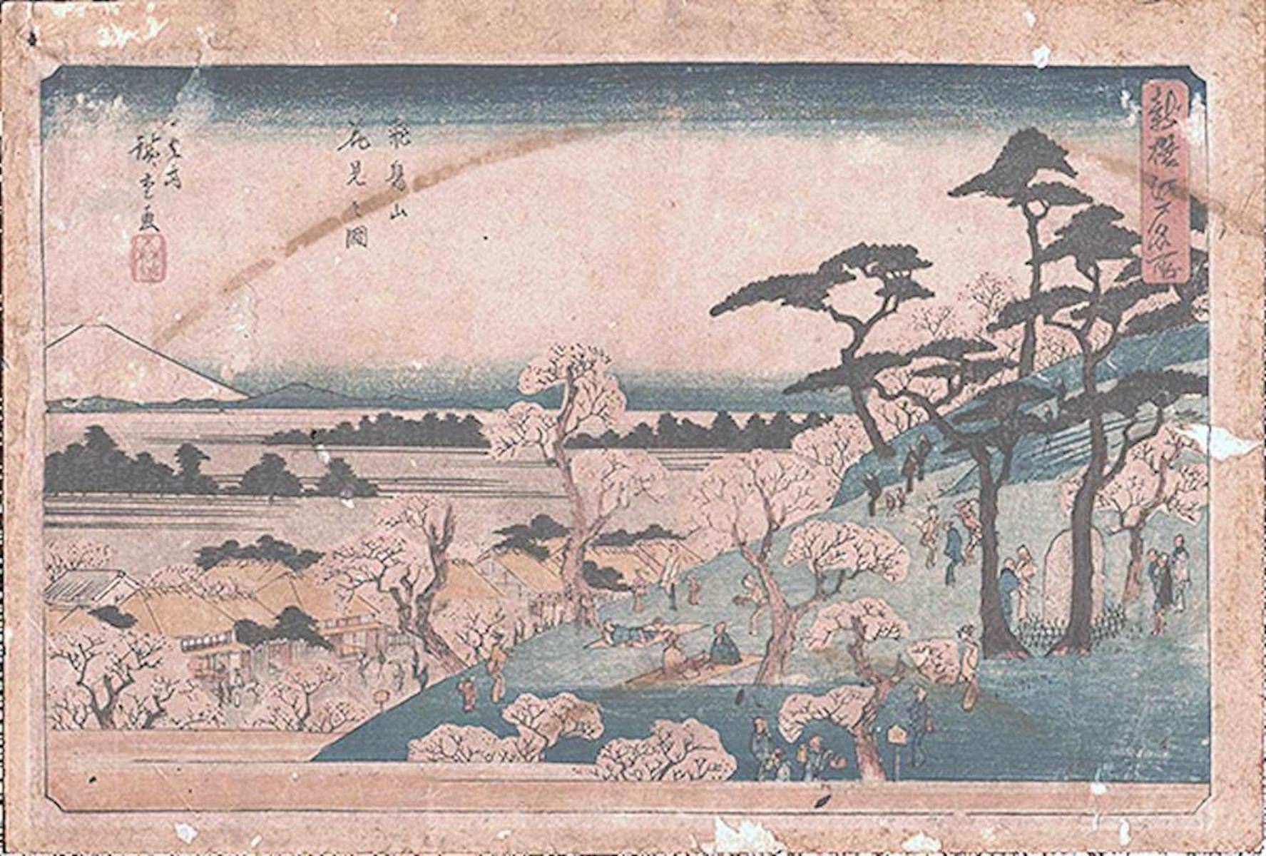 HIROSHIGE- PICNIC SCENE. MEASURES AT 14 X 9, FINE CONDITION