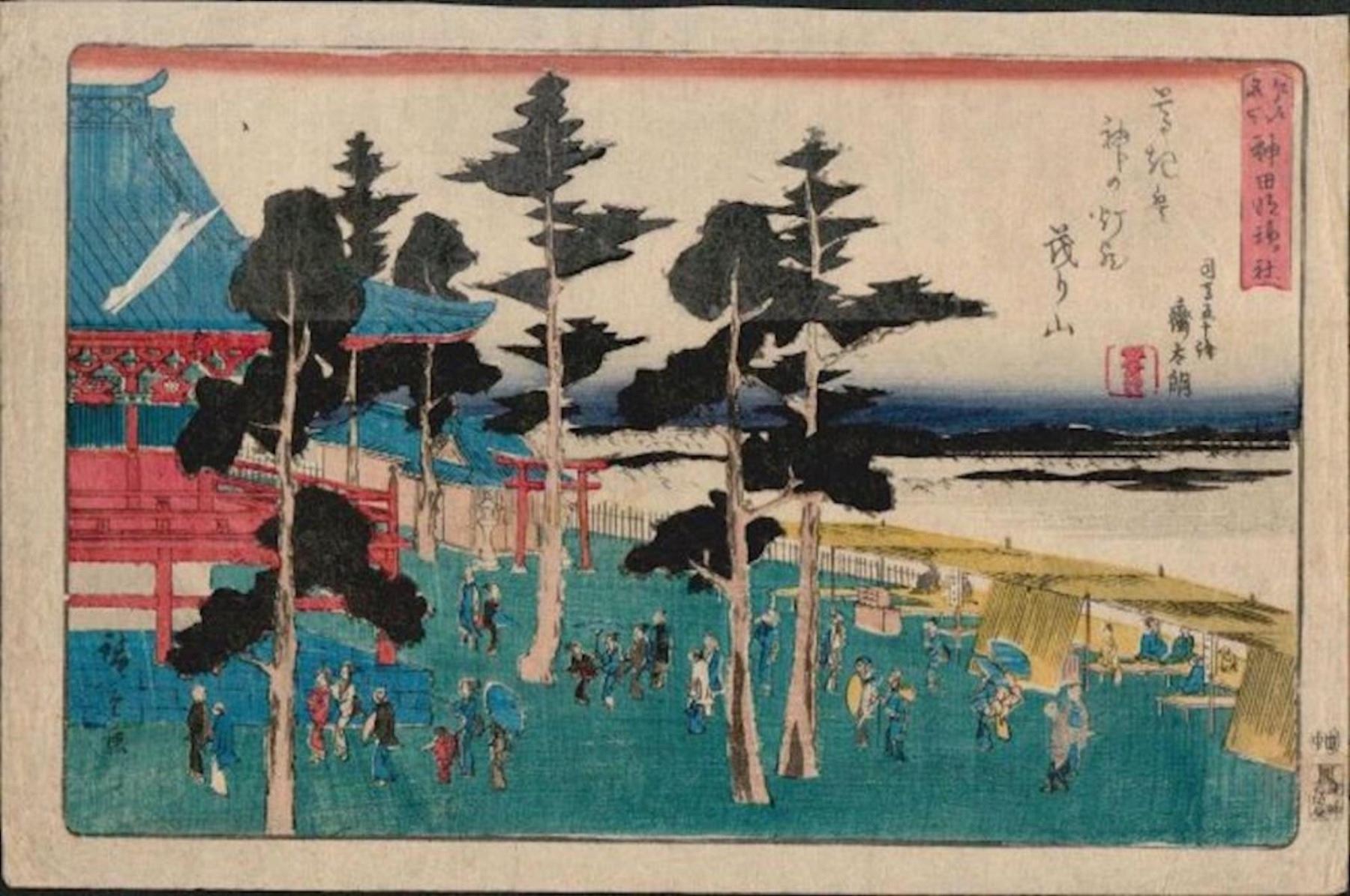 HIROSHIGE TEMPLE PRECINTS. OBAN, YOGO-E, 9 5/8 X 14 3/4. CIRCA 1845, VERY FINE CONDITION...
