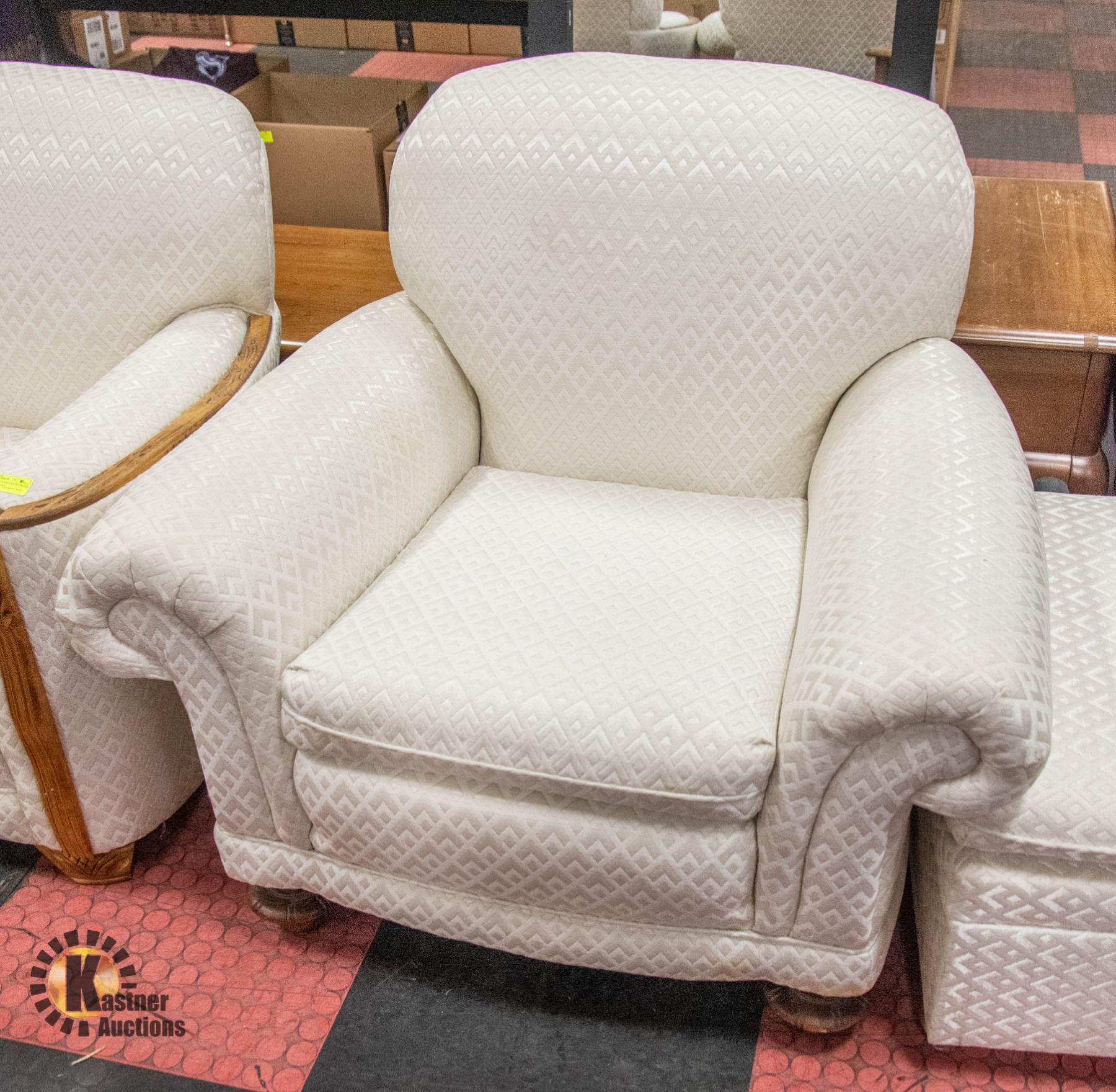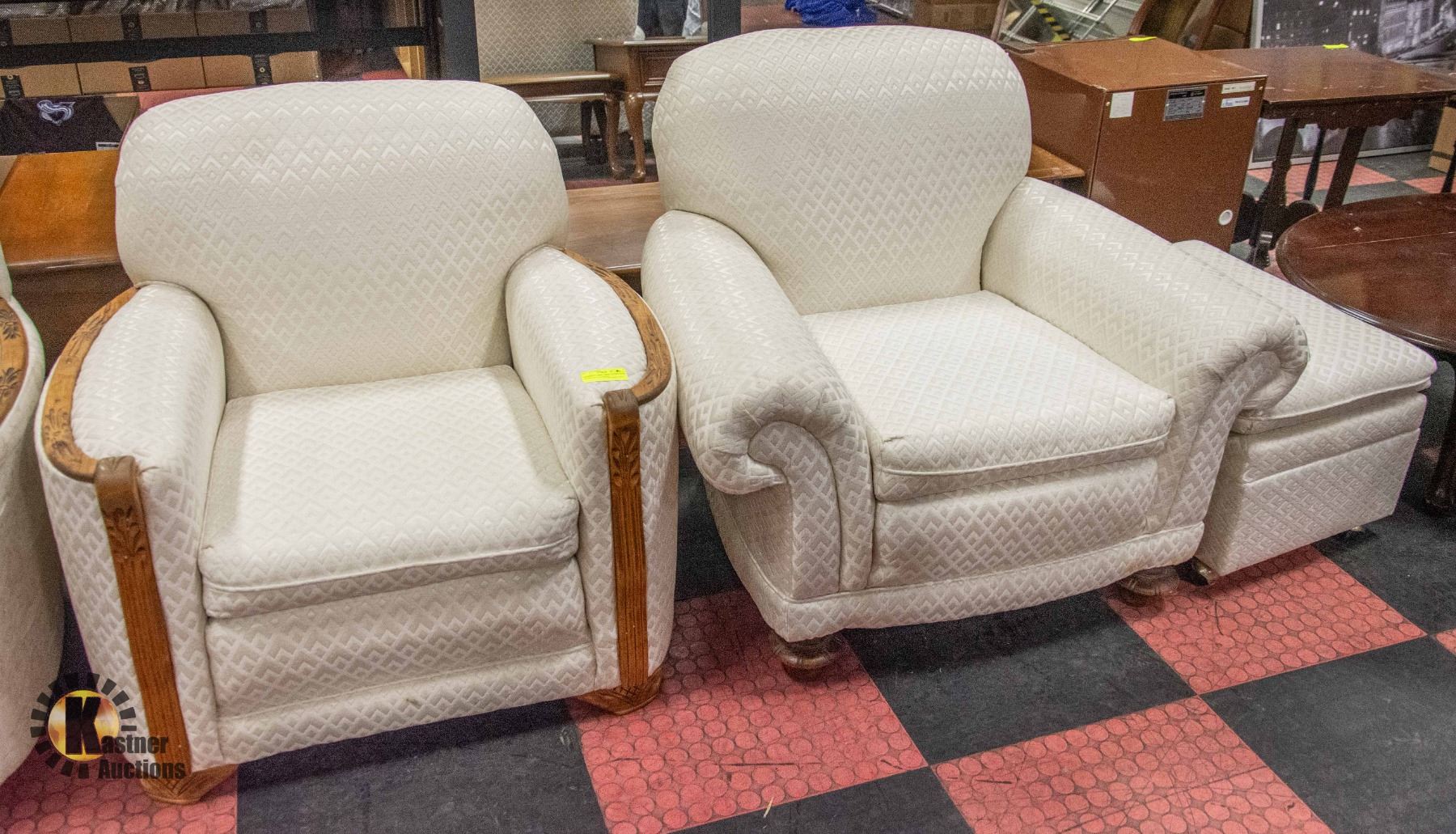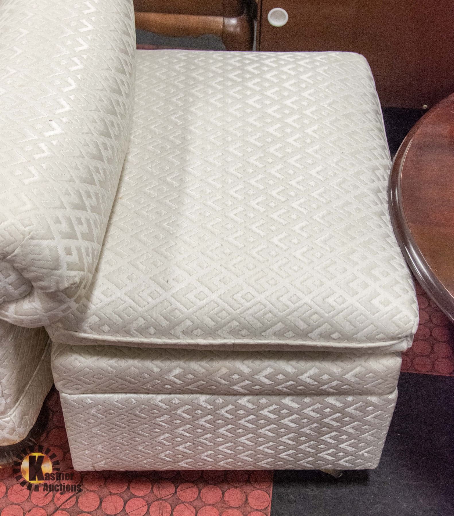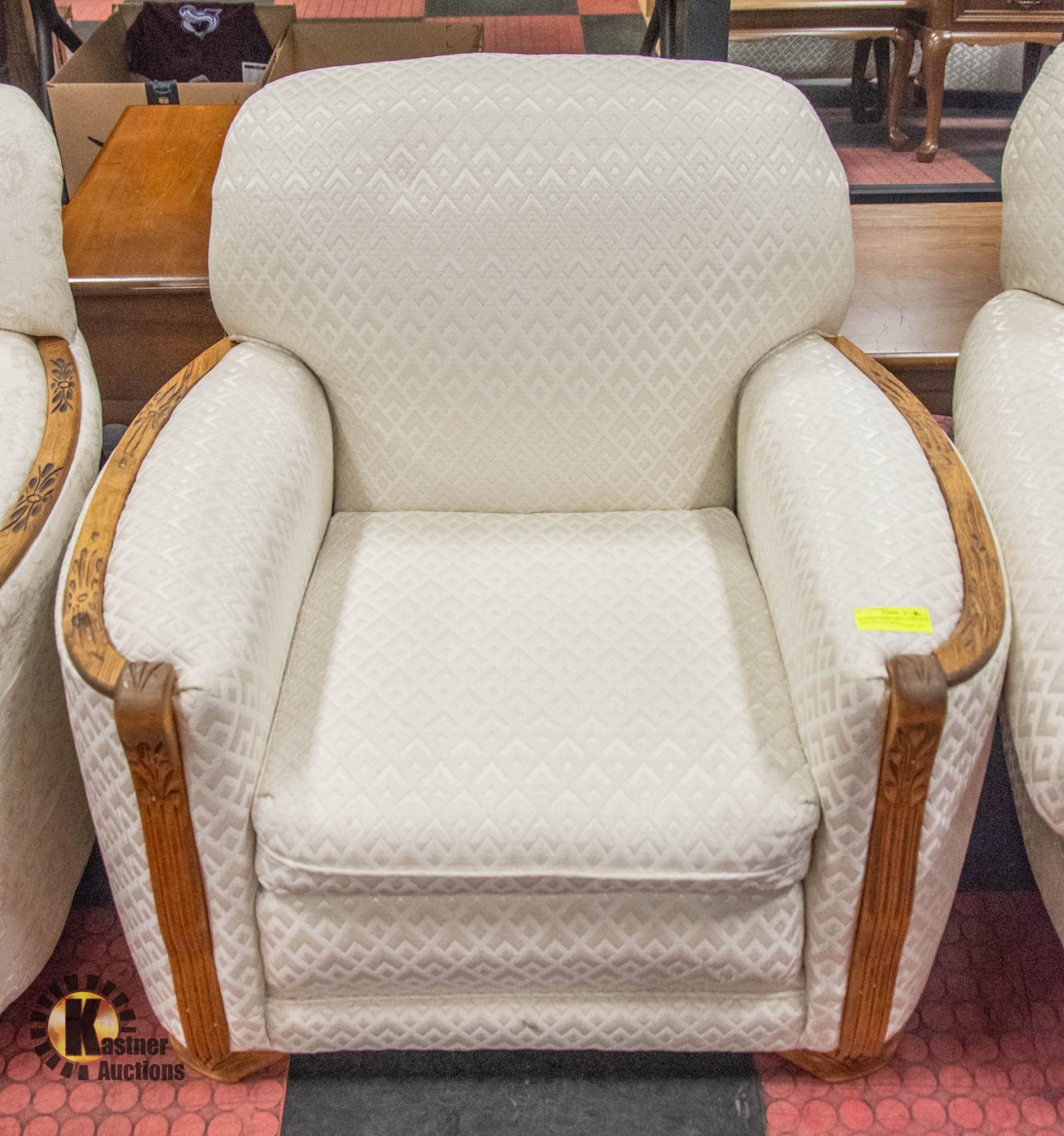 VINTAGE WHITE/CREAM COLORED FABRIC WITH WOOD ACCENTS     **ALL ITEMS MUST BE REMOVED BY 5PM SATURDAY, FEBRUARY 10TH 2024. ALL REMAINING ITEMS WILL BE SUBJECT TO A $6.00 PER DAY STORAGE CHARGE. ANY ITEMS REMAINING AFTER MONDAY, FEBRUARY 26TH, 2023 WILL BE CONSIDERED FORFEITED. NO REFUNDS WILL BE ISSUED FOR FORFEITED ITEMS. TO SCHEDULE A PICK UP APPOINTMENT CLICK HERE
