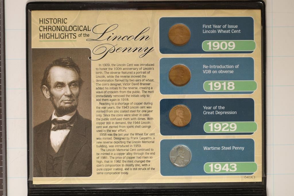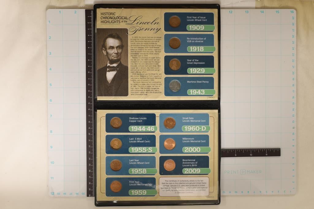 PENNY FEATURING 11 DIFFERENT YEARS THAT WERE SIGNIFICANT TO CHANGES IN THE LINCOLN CENT