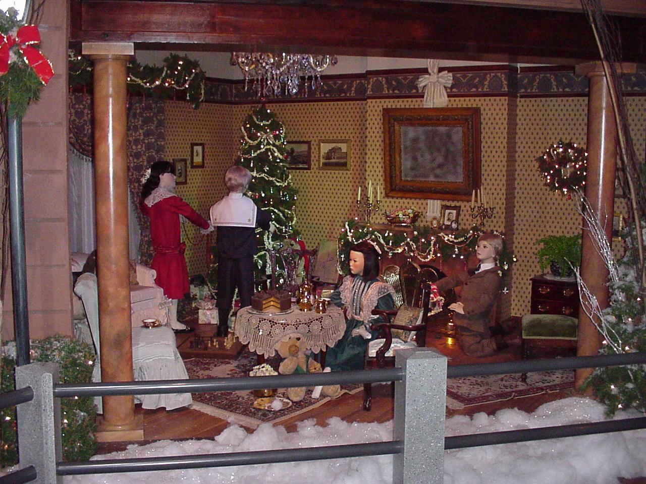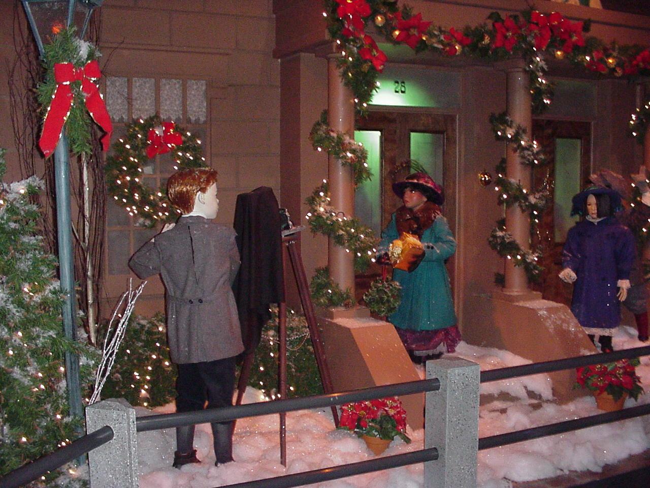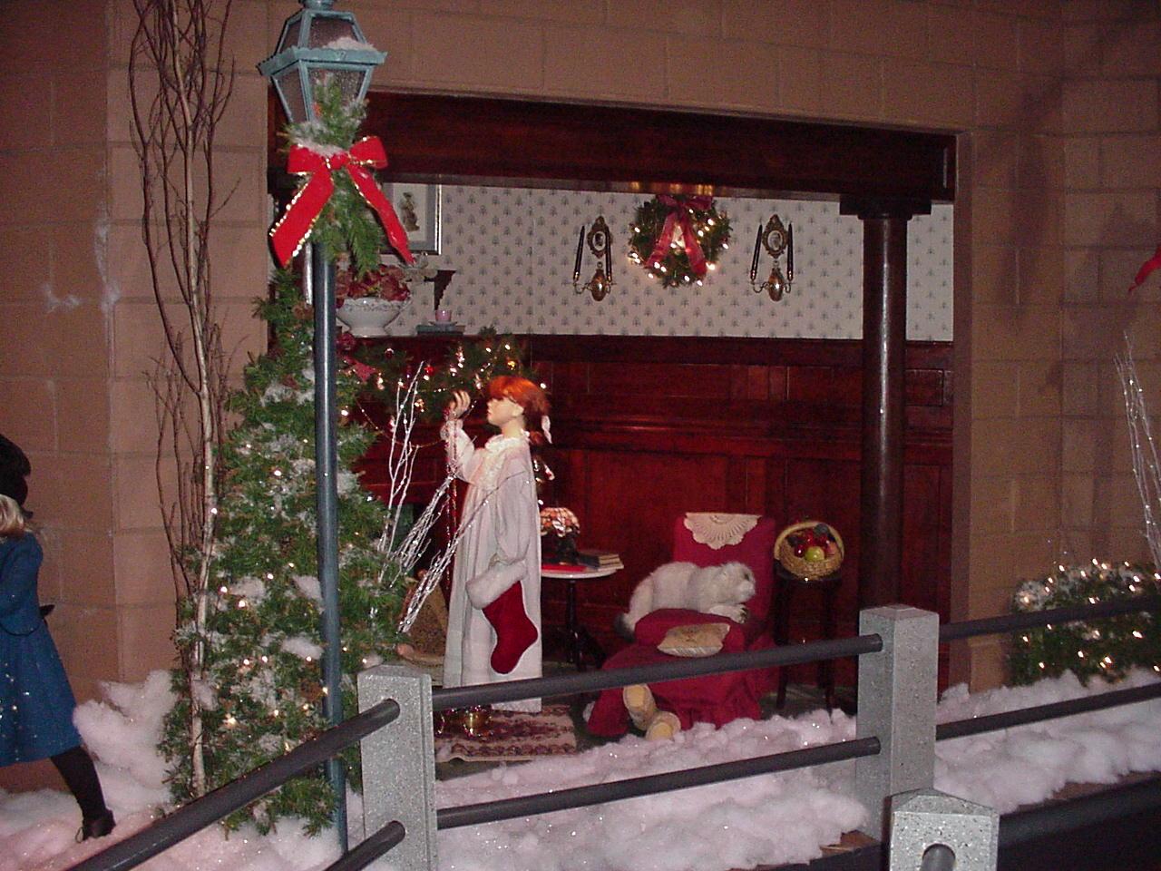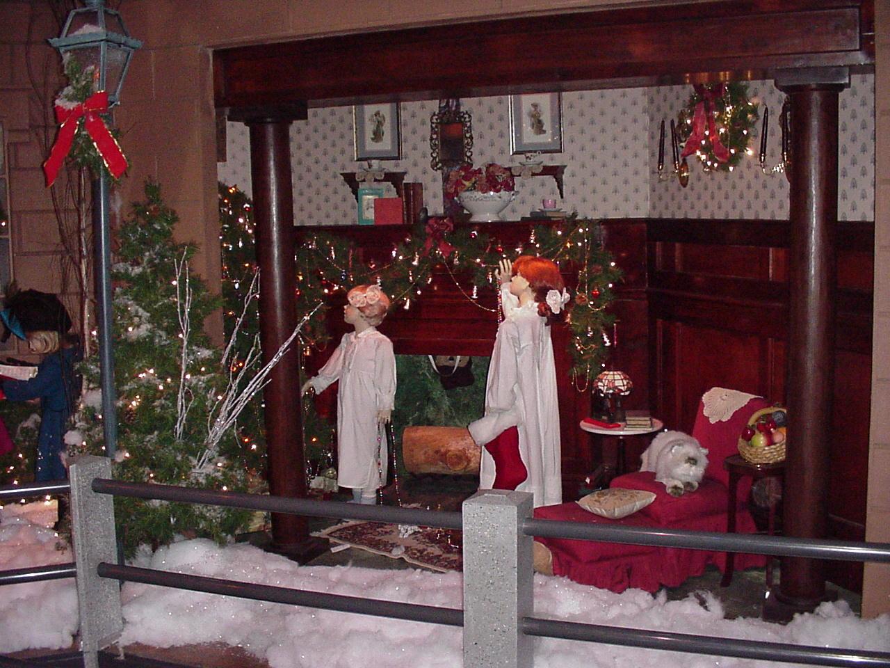 One scene showed a woman in a library reading the book, ?Twas the Night Before Christmas,? then there was the mischievous dog stealing a string of popcorn off a Christmas tree, Mrs. Claus rolling out dough in a kitchen, an outdoor scene showed ice skaters on a frozen pond, and another scene showing a boy in a barbershop getting a haircut.