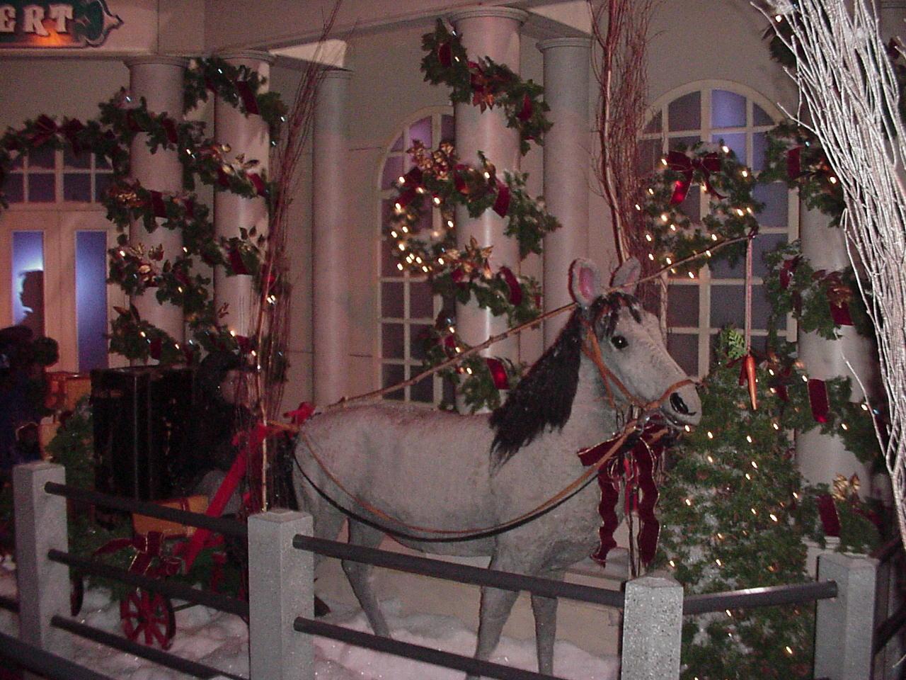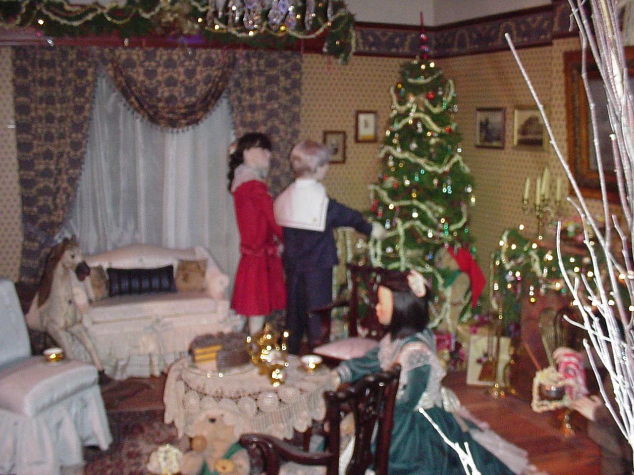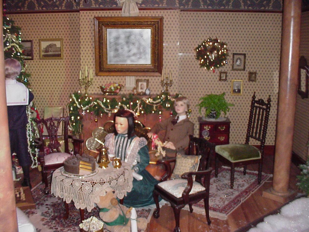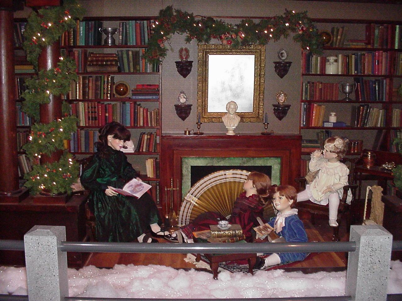 One scene showed a woman in a library reading the book, ?Twas the Night Before Christmas,? then there was the mischievous dog stealing a string of popcorn off a Christmas tree, Mrs. Claus rolling out dough in a kitchen, an outdoor scene showed ice skaters on a frozen pond, and another scene showing a boy in a barbershop getting a haircut.