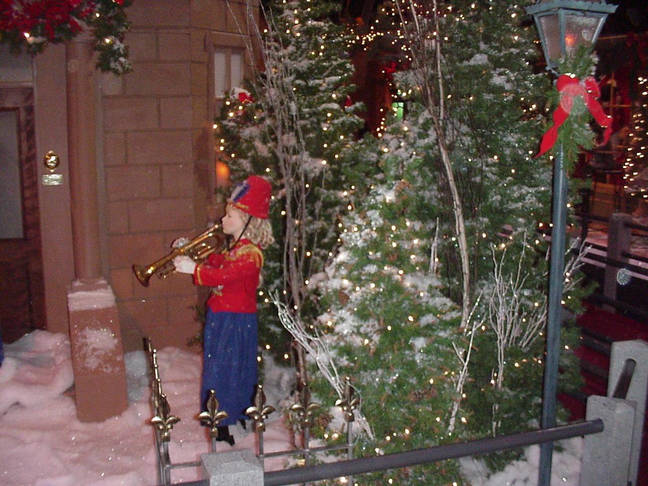 After walking past these holiday scenes and by doors decorated with wreathes, visitors would find Santa Claus and elves. In recent years, children would be given a candy cane and have the chance to speak with Santa. And in recent times, festive holiday music was played, the music of the Boston Pops Orchestra.