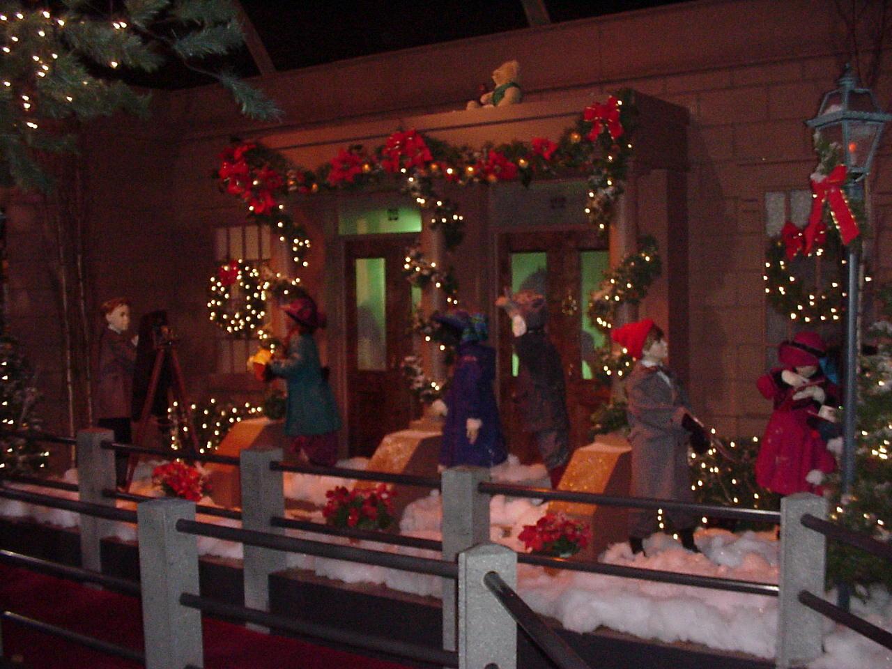 Visitors to Enchanted Village would walk through the town, past 12-foot-high snow-covered buildings and see holiday decorating taking place through the windows of homes, toy-making going on through a storefront window, and figures in other buildings getting ready for the holidays and enjoying the season.