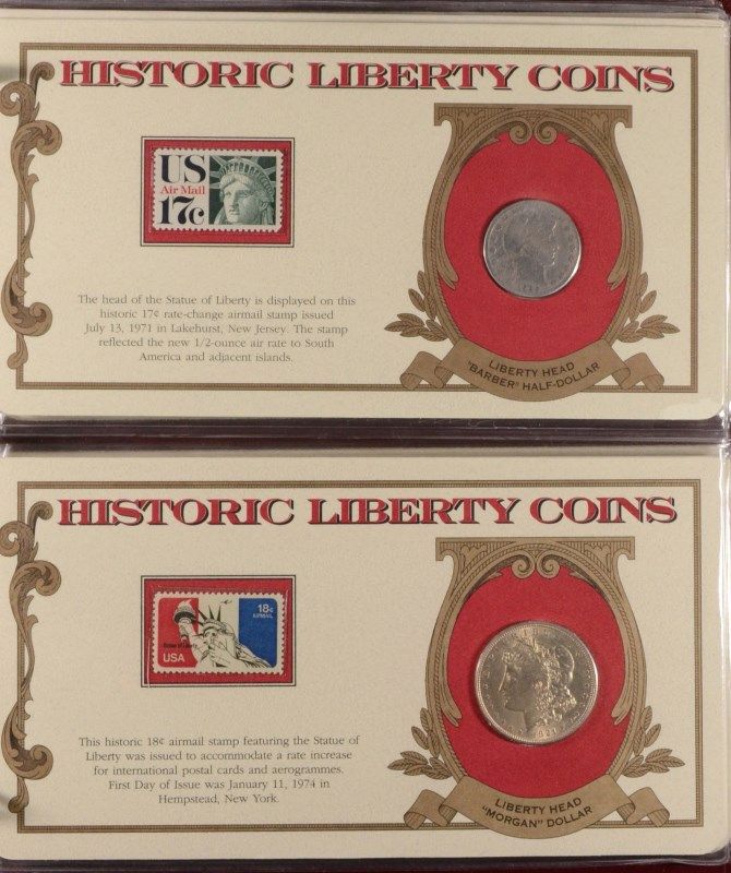 HISTORIC LIBERTY COIN SET: POSTAL COMMEM. SOCIETY, STAMPS AND COIN AS PICTURED