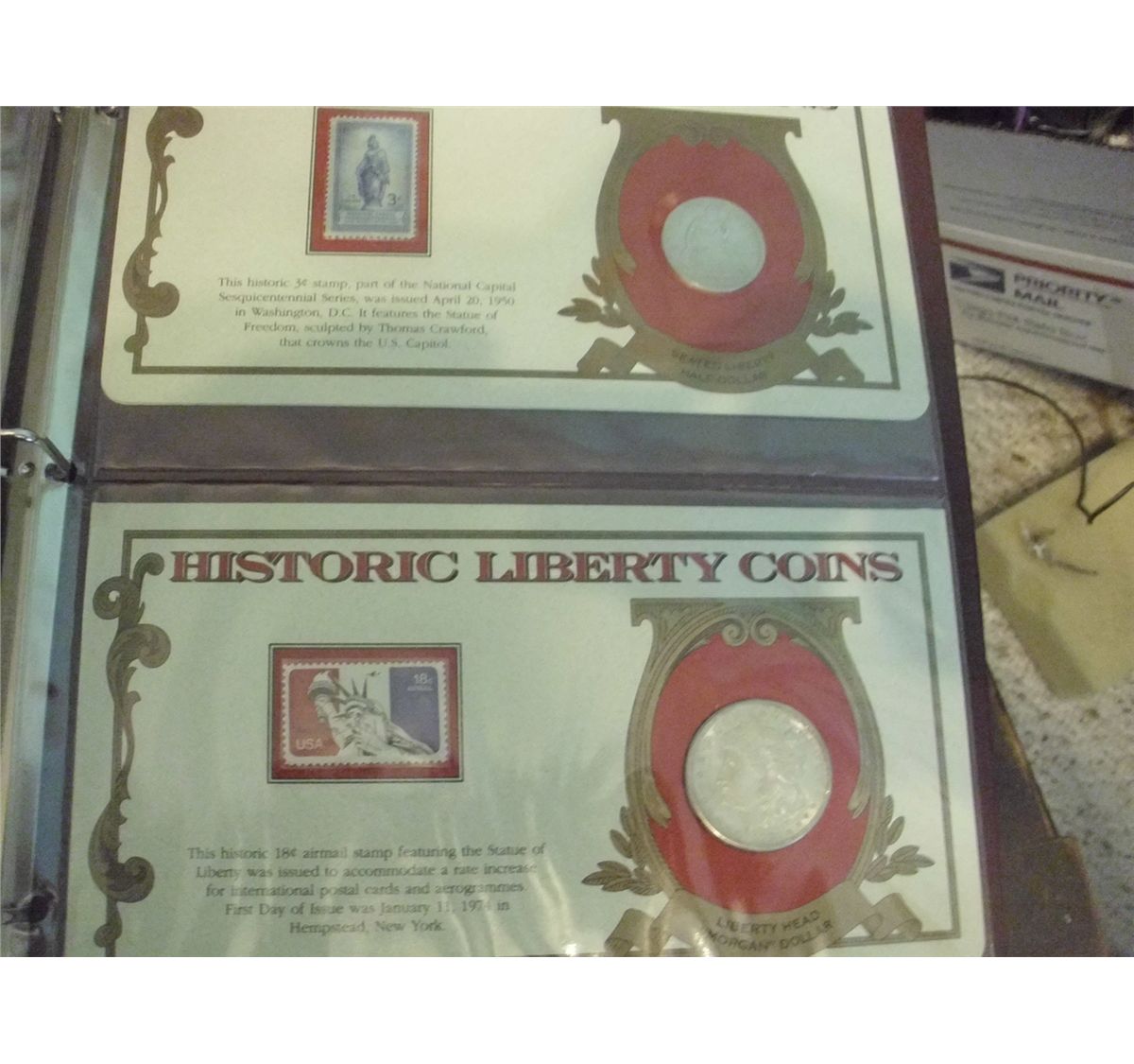 LIBERTY COIN & STAMP BOOK SET. 12 SETS COINS W/STAMPS