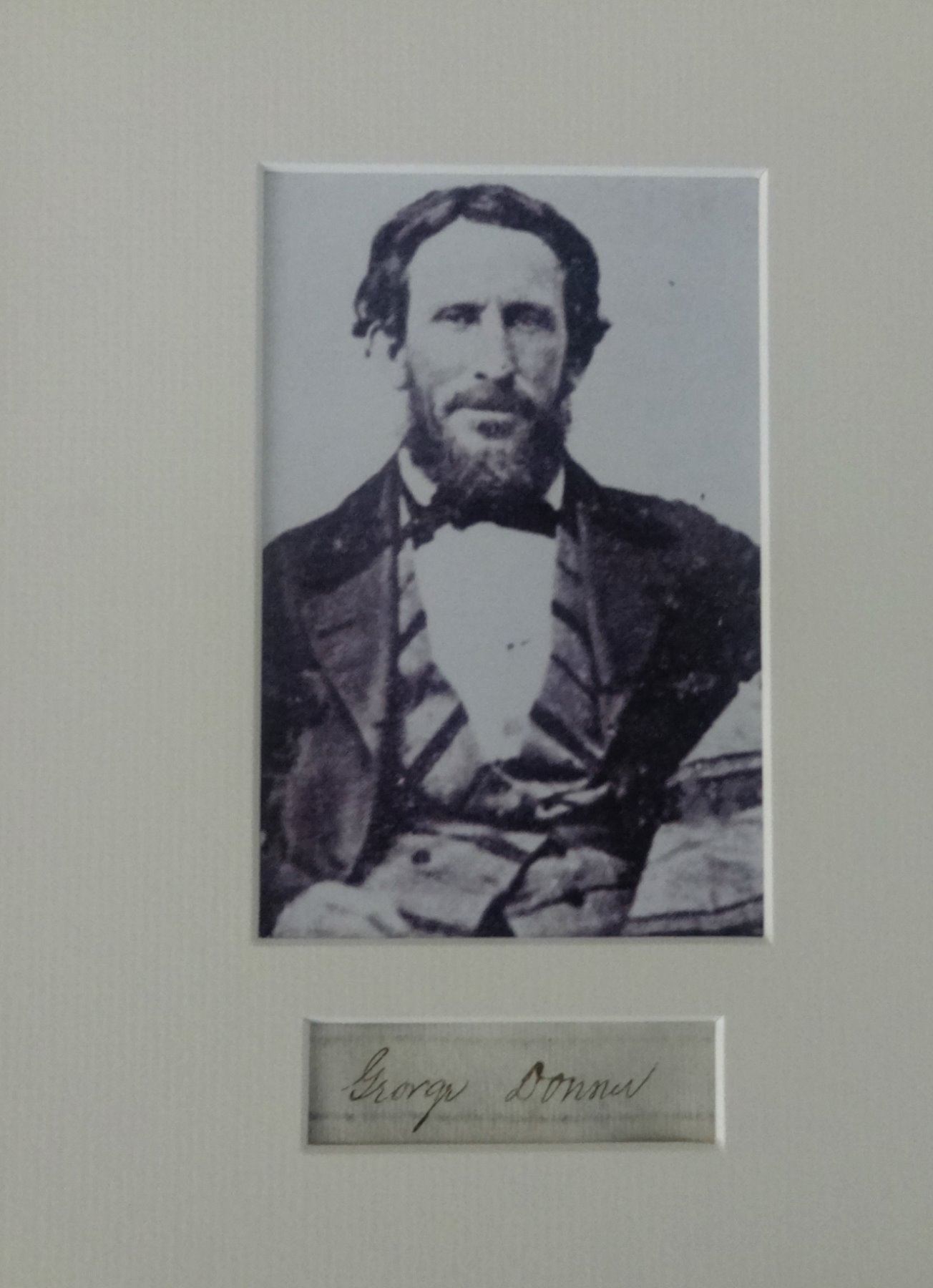 George Donner was the leader of the Donner Party, a group of California-bound American settlers who became snowcovered in the Sierra Nevada of Alta California, Mexico in the winter of 1846?47. Autograph of George Donner. Professionally mounted and framed. Supplied with coa. Please note there is a tear through part of the signature.