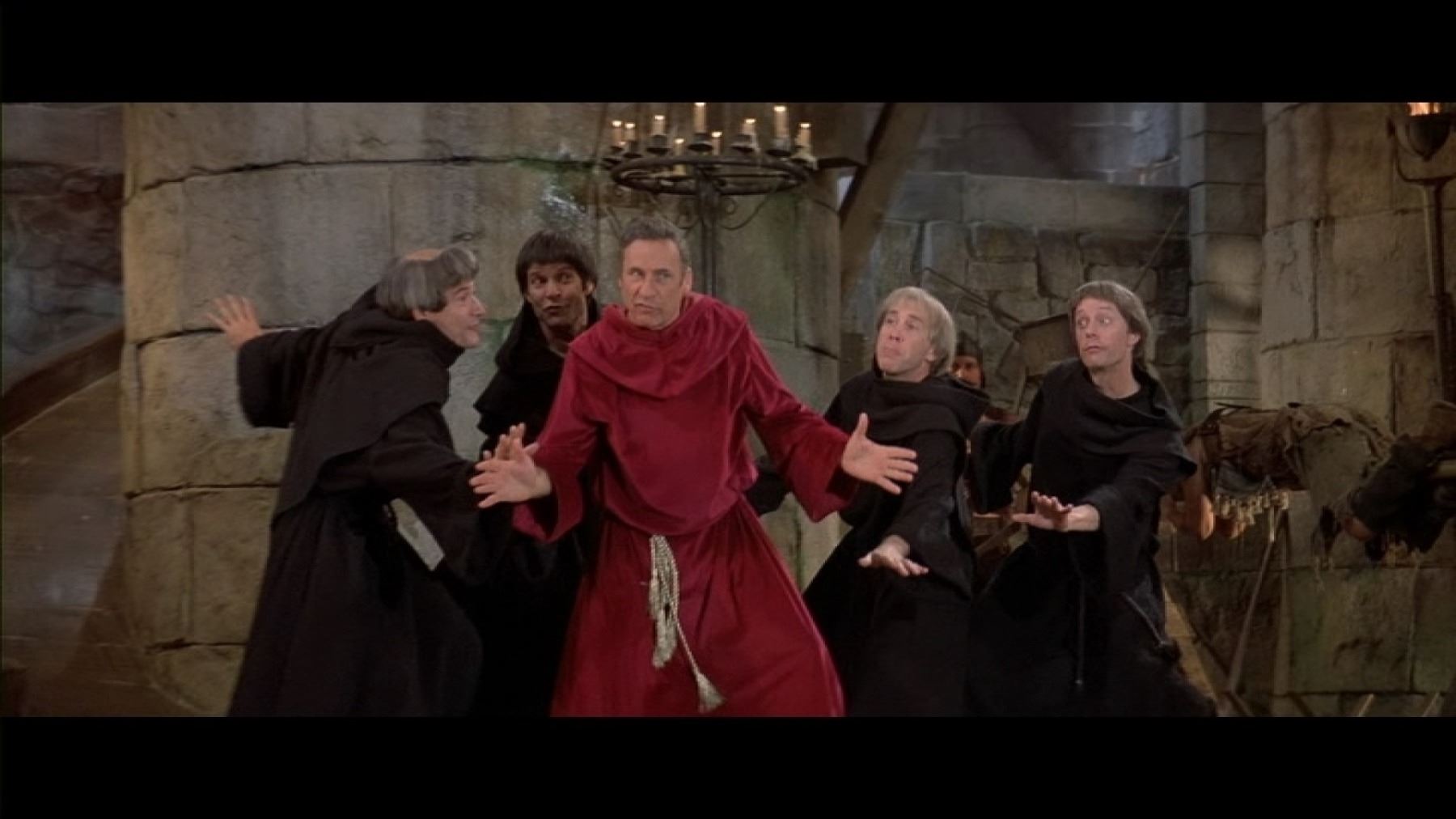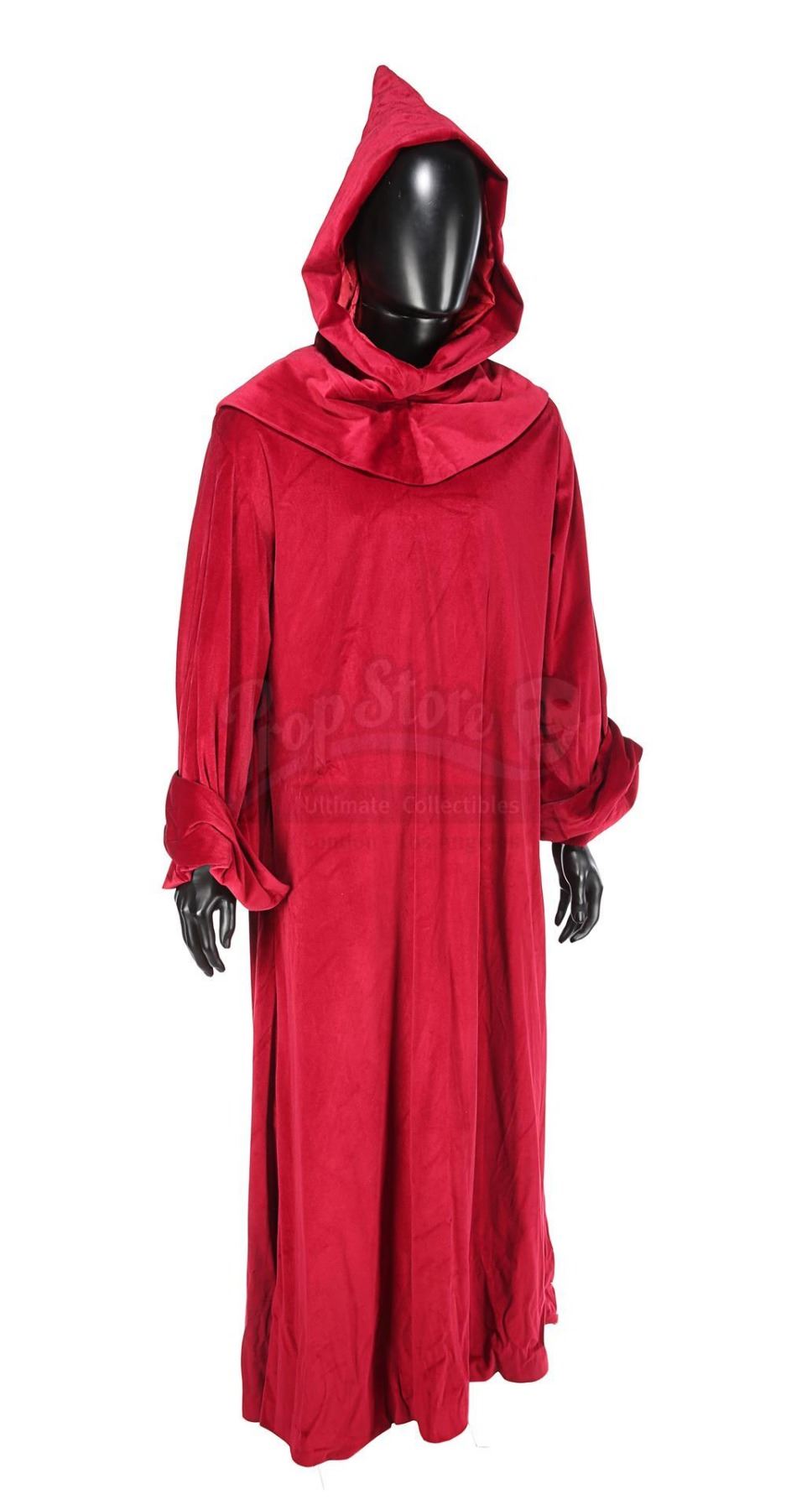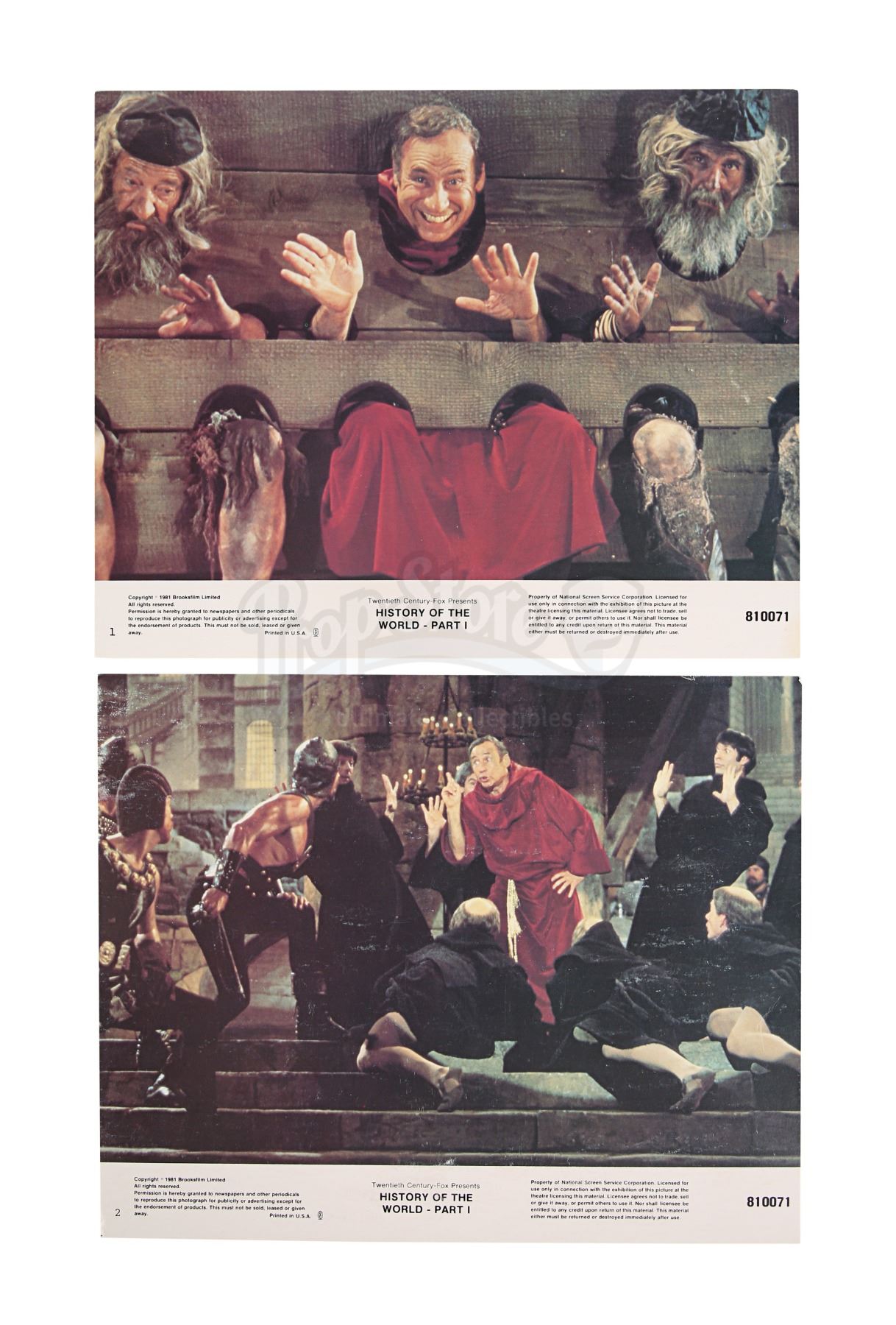 Torquemada's (Mel Brooks) inquisitor robe from Brooks' historical comedy History of the World: Part 1. Torquemada wore his robe during the big musical number about the Spanish Inquisition, which featured tap-dancing monks and synchronised-swimming nuns. Torquemada's floor-length robe is made of red velvet and features a hood, which contains a small metal weight to help keep its shape. An Ital Costume label inside the collar reads "Mr. Brooks". The costume has some wear from production use and age, including some plucked fibres and loose threads, most notably around the hem and sleeves. The lot is accompanied by two original 8" x 10" lobby cards featuring Brooks wearing the robe.