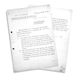 (1889 - 1945) Fuhrer of Germany and Nazi Party leader, Hitler's bloody rise to power, his military seizure of most of Europe and North Africa and his genocidal racial policies culminated in suicide in his Berlin bunker as Russian troops approached. Highly important D.S. 2pp. folio, Fuhrer Headquarters at Wolf's Lair, Rastenburg, Jan. 21, 1943. In this rare "befehl", or order, Hitler reorganizes civil and military divisions in the Ukraine following a series of decisive losses, on the same day that Paulus and Manstein unsuccessfully sought permission to surrender Stalingrad, and only nine days before they were ultimately forced to surrender that besieged city. Hitler redefines territory in and about Kiev, the Crimea, Dnjepetrowsk and Nikolajew as being: "the Theater of War of the Army". The second part of the order instructs that the armed forces chief of the Ukraine is to now be regarded as the chief commander of the army remaining under his command, and officers under it will be under his direct command. The third and final part of the order states that civil service personnel are to remain in the Ukraine, and the chief of the Army General Staff and the commander-in-chief of the army group may also appoint additional staff. Despite Hitler's efforts, Stalin's use of massed troops undertaking suicide charges eventually weakened and broke the German occupation of the Ukraine. The document is additionally initialed on the final page by ALFRED JODL (1890-1946) and WILHELM KEITEL (1889-1945). An important document, signed by the top three leaders of Nazi Germany.