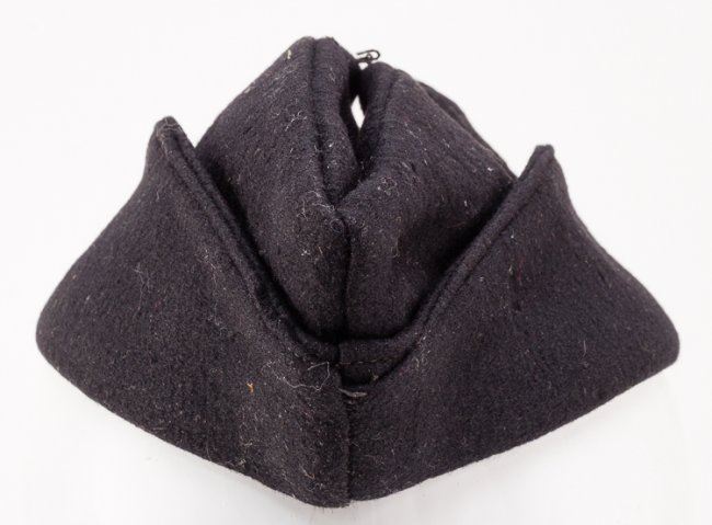 Scarce navy blue wool Hitler Youth cap, 11" long, marked within in ink: "H. Schmidt VI Schotten". Three small moth holes, else very good.