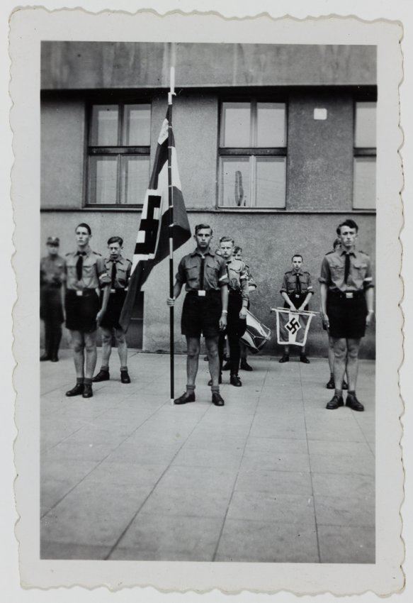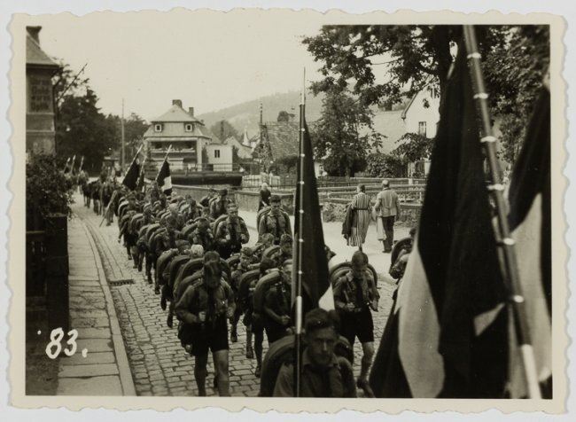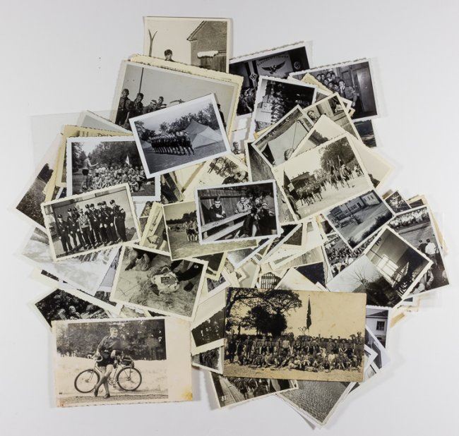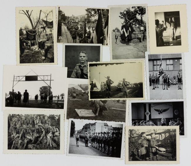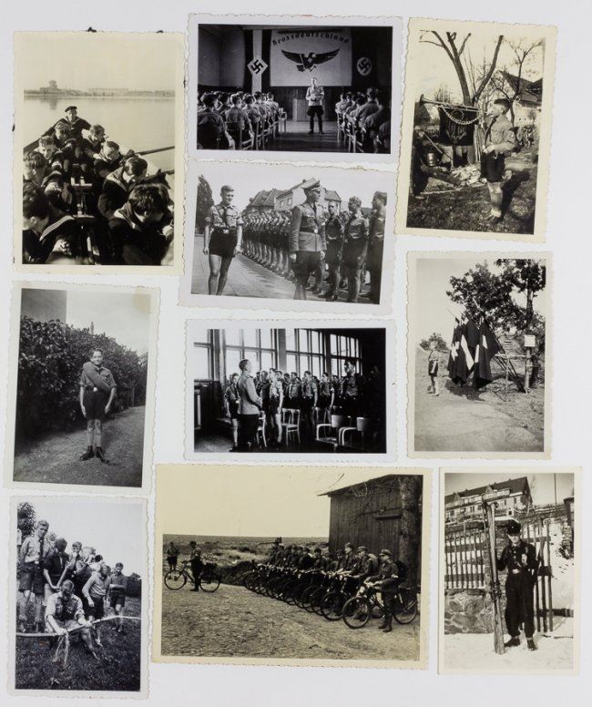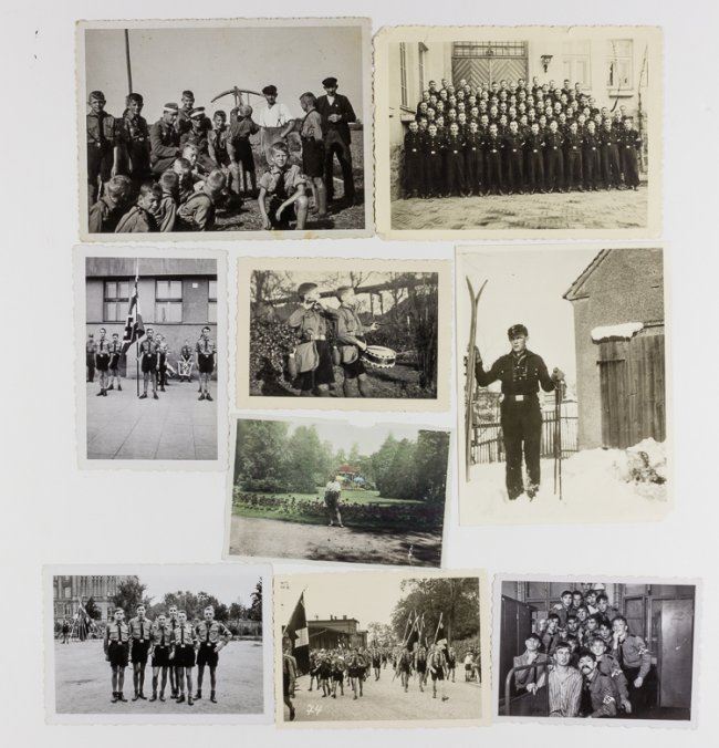 Large collection of approx. 140 mixed photos of Hitler Youth and Deutsches Jungvolk, average size about 2" x 3" A variety of subjects includes sea cadets, youths marching, inspection, parading, camping, athletic events, etc. Overall very good.