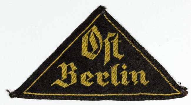 H.J. sleeve triangle, this example issued to a youth from "Ost Berlin". Very good.