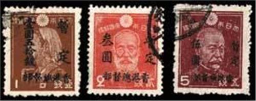 1945 3 to 5y on 5s claret (SG J1-3) odd shortish perf, otherwise fine used, cat £195