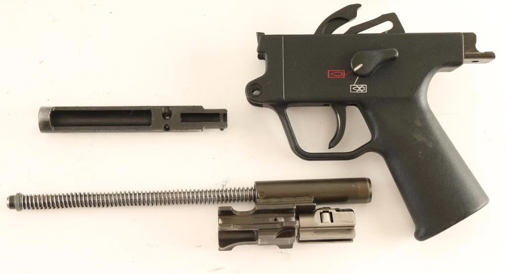 Includes a two position lower, full-auto bolt, threaded 9" three-lug barrel, flash hider, thread protector, recoil spring, cut receiver, forend, gas tube, charging handle, fixed shoulder stock, iron sights, pins & other small parts. Condition is very good.
