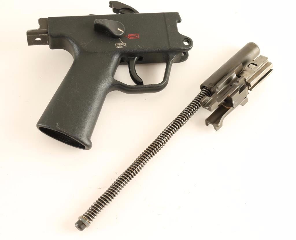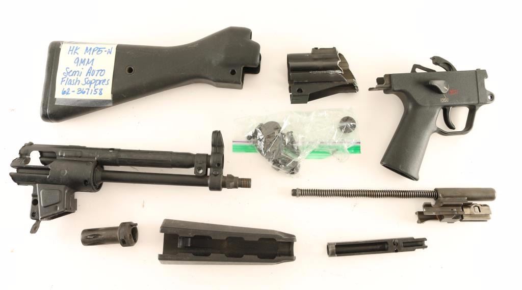 Includes a two position lower, full-auto bolt, threaded 9" three-lug barrel, flash hider, thread protector, recoil spring, cut receiver, forend, gas tube, charging handle, fixed shoulder stock, iron sights, pins & other small parts. Condition is very good.