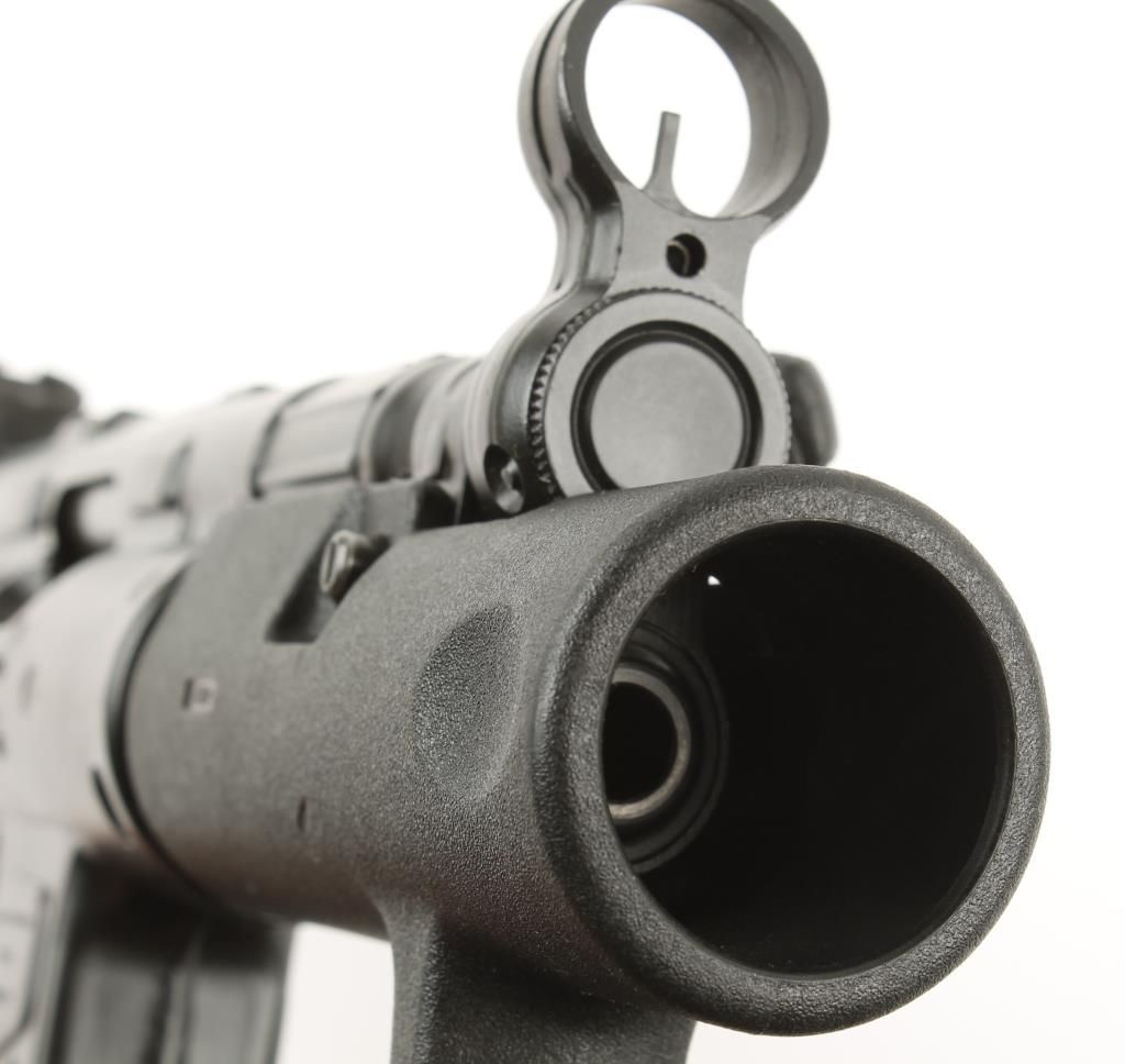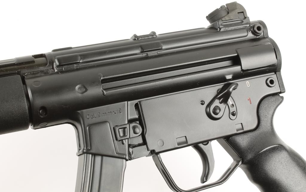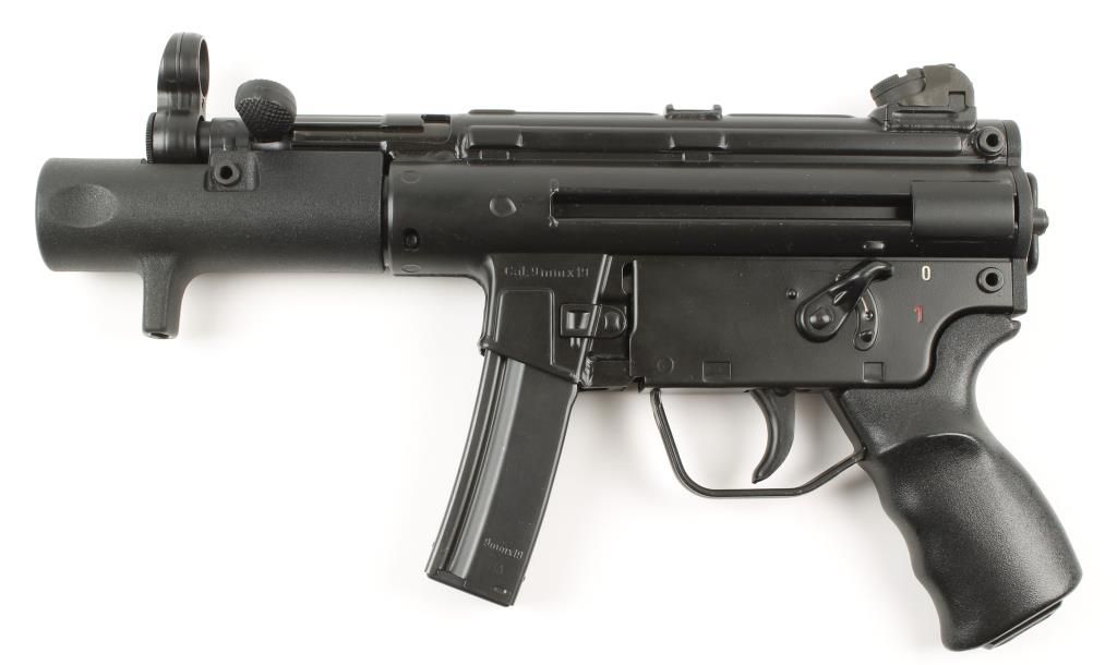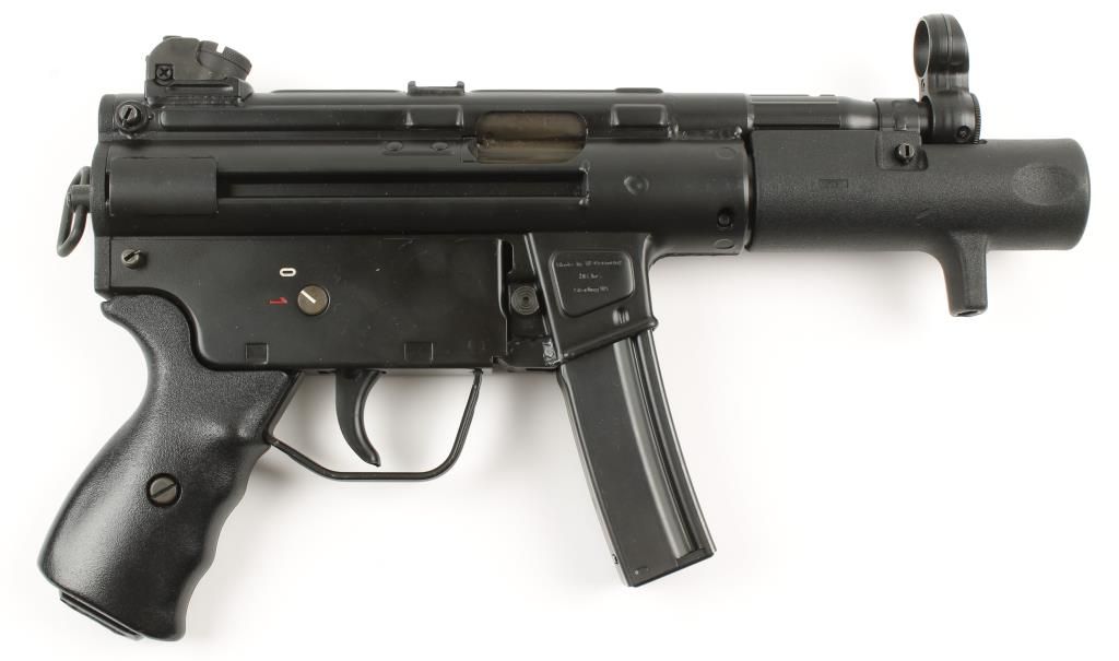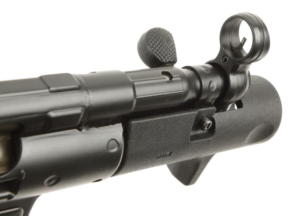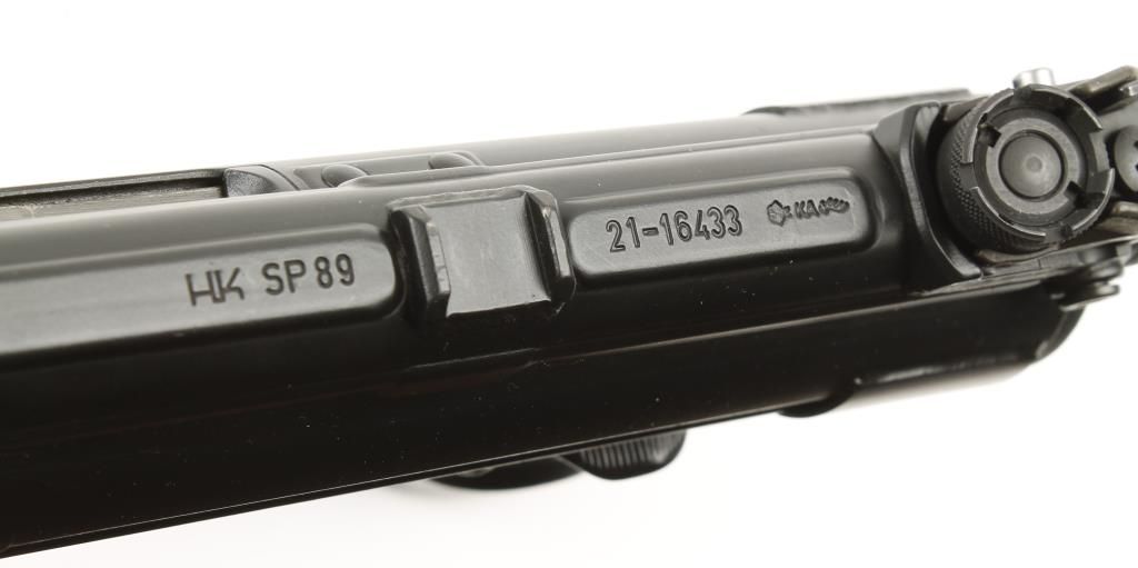 West German made large frame semi auto pistol made in the early 1990's. Black finish, black plastic grip and hand guard, hooded front sight, adjustable rear square notch sight and 4-1/2" barrel. Excellent bore and action. Includes 1 magazine. Condition: Excellent.