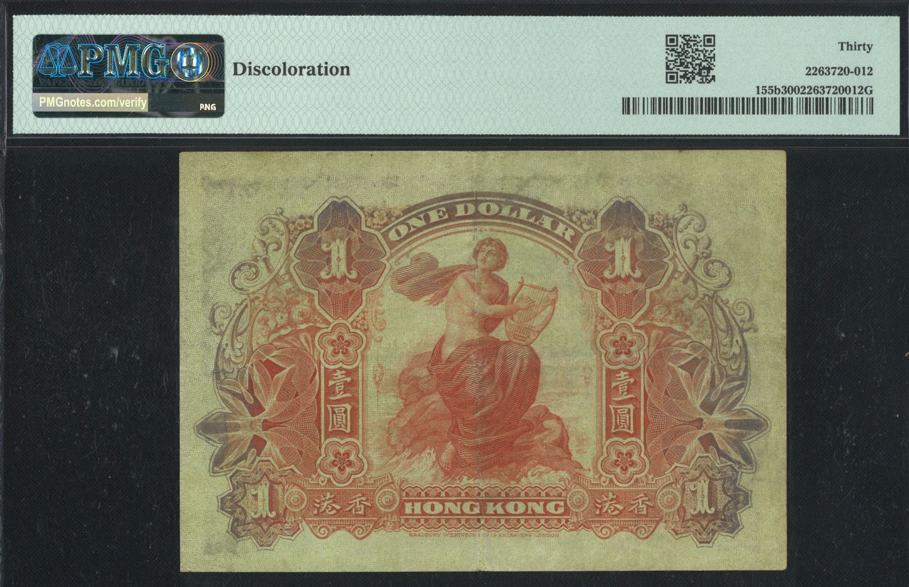 HK & Shanghai Banking Corp. 1913, $1, 663381. PMG 30. Discoloration.